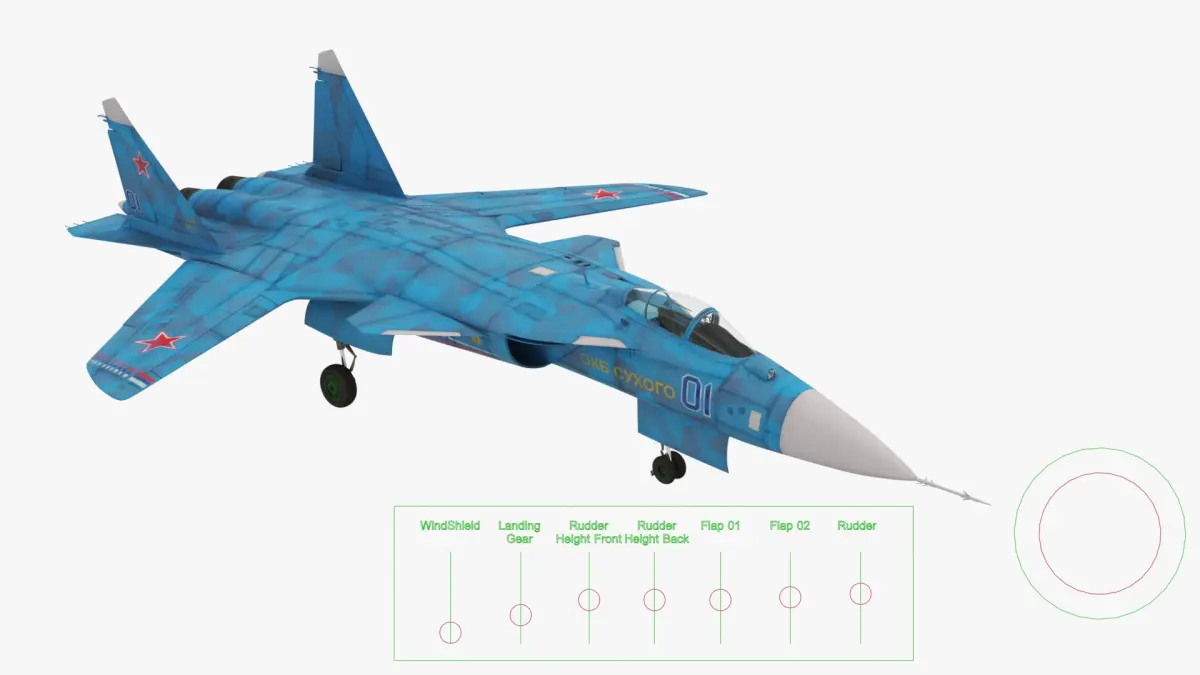 Sukhoi Su 47 Berkut Russian Supersonic Jet Fighter Rigged is fully rigged and is ready to be animated. You can easily position it the way you need or animate it the way your project requires using helpers in 3D Studio Max. See the turntable to get an idea of how rigging works. The pose of the model on the render images is an example and can be recreated using rig, it is not initially included into the product.