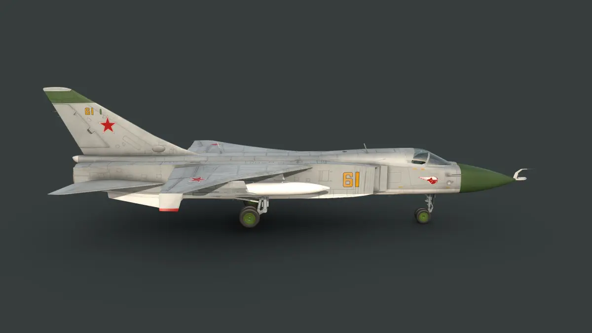 The T6-1 prototype, first flown in June 1967 is a fixed-wing aircraft (but with very special wingtips) as opposed to the production Su-24 that featured variable geometry wings. Furthermore this prototype has 4 RD-36-35 lift engines in the fuselage to give the aircraft STOL characteristics.