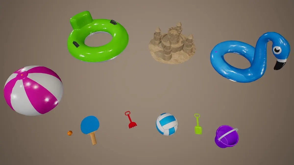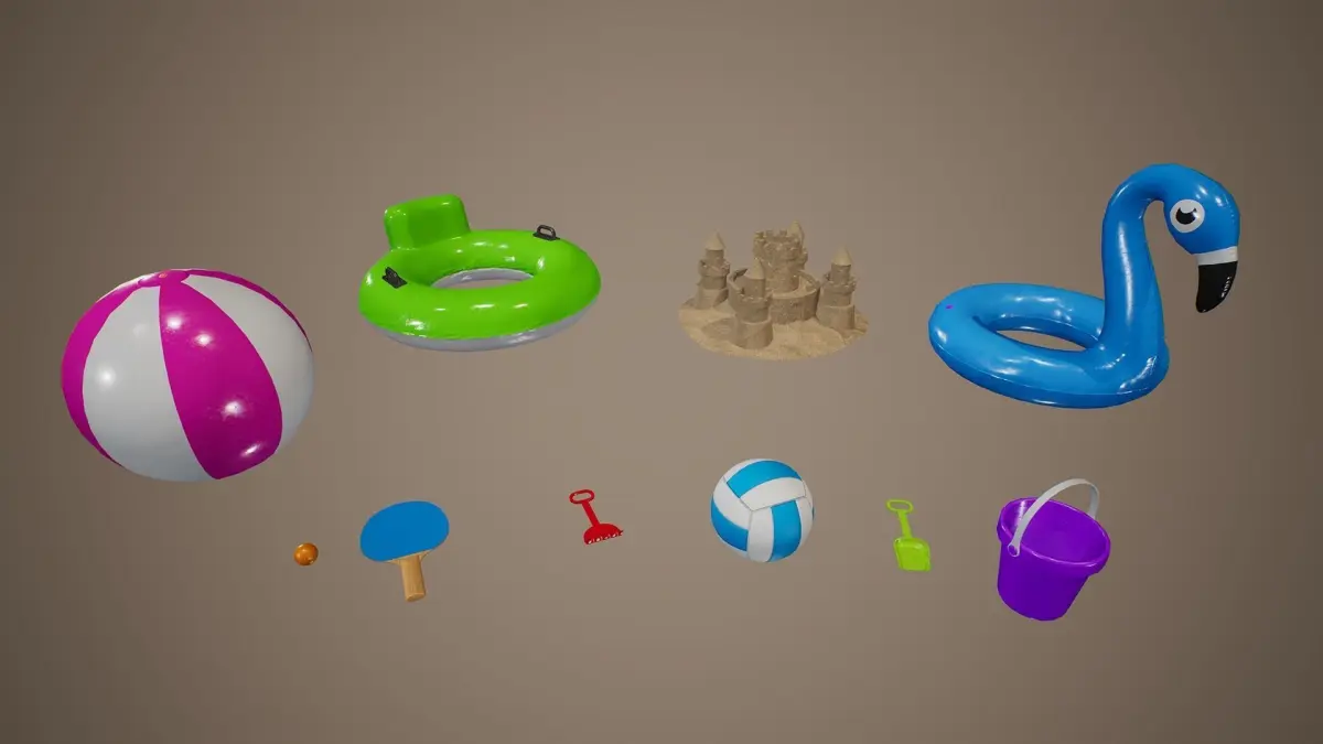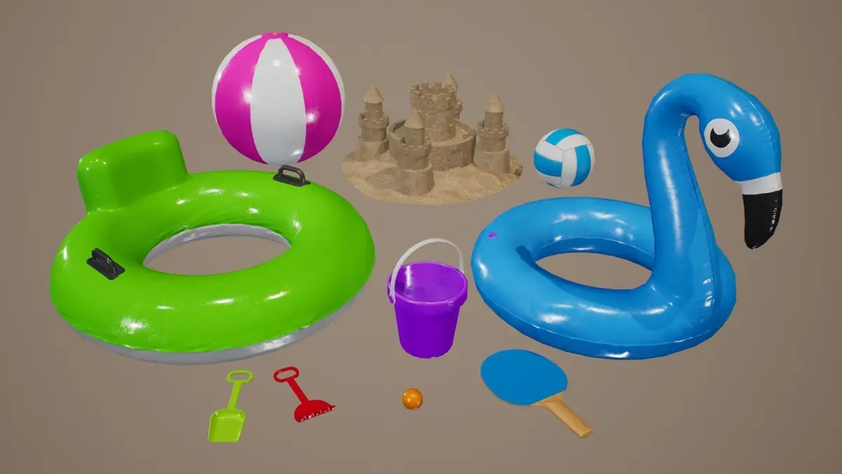 Summer Beach Toys with PBR Textures. Suitable for any scene. Ready to use in any project.