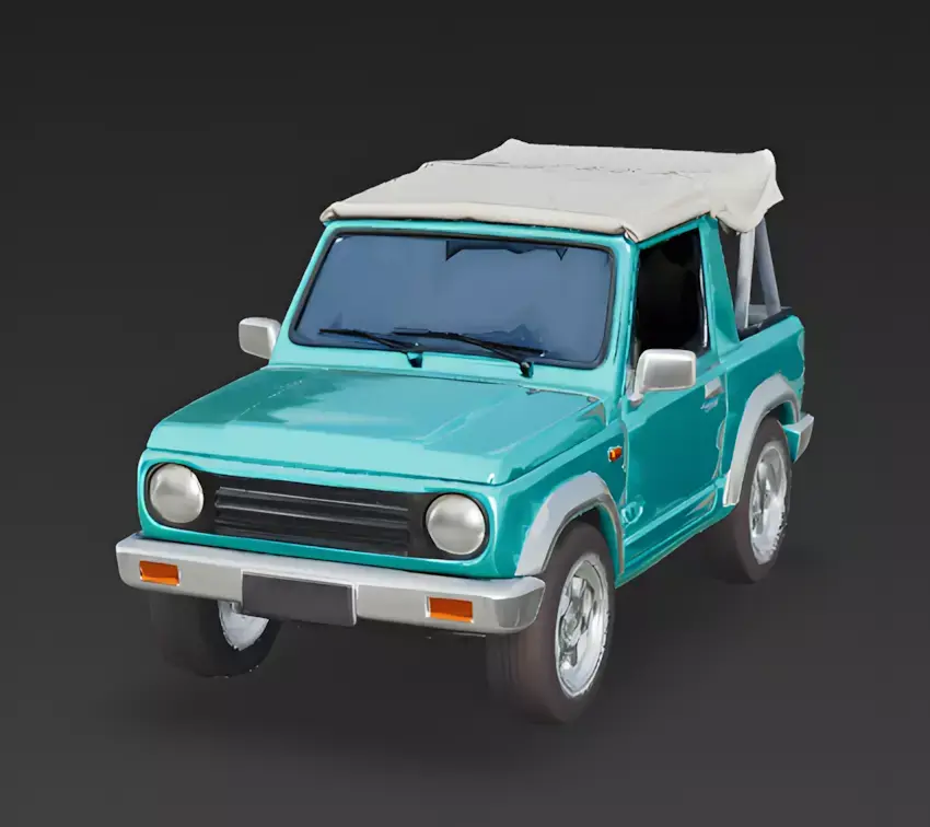 The Overall ConceptThis asset is a stylized mini-SUV that blends vintage off-road geometry with a modern, pop color palette. Its short wheelbase and open-top configuration evoke a sense of adventure and coastal living.