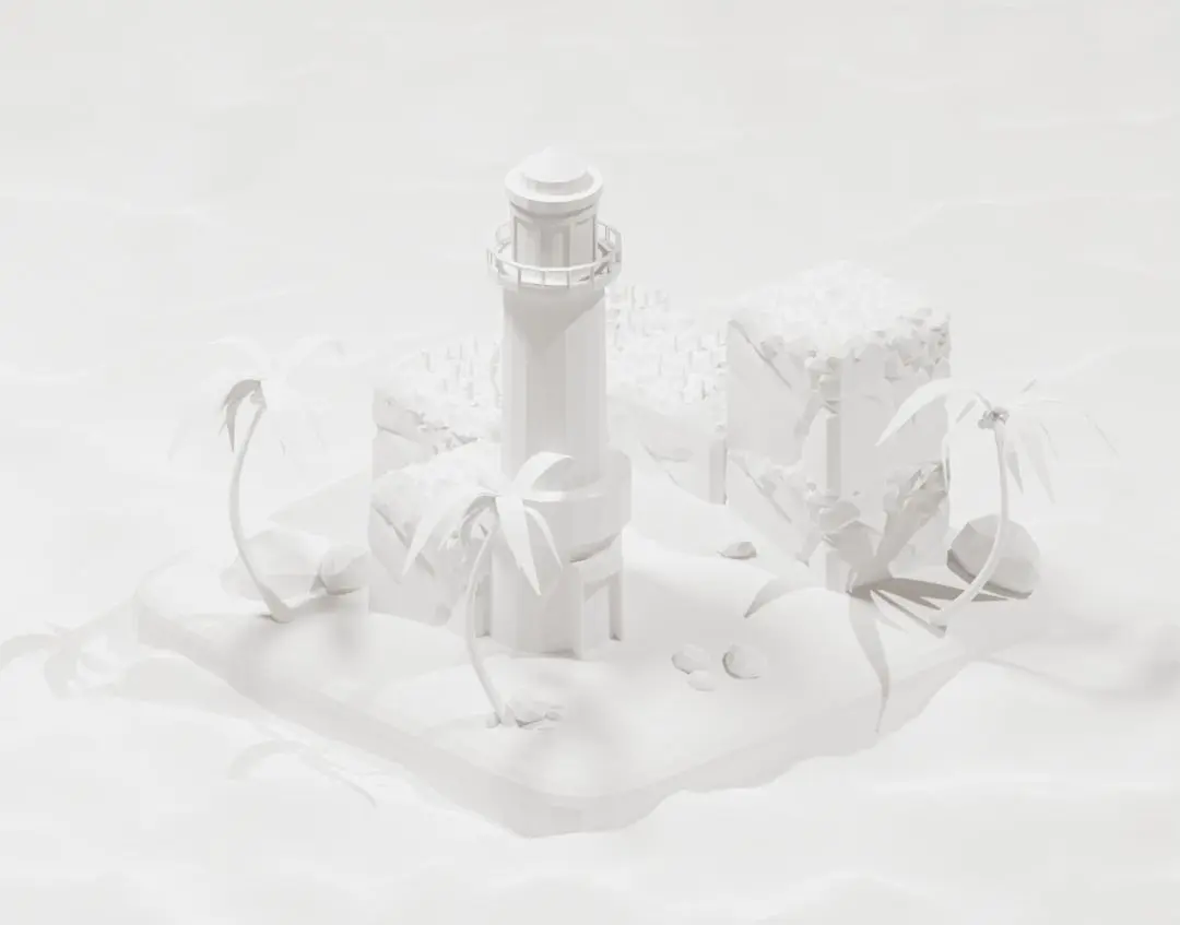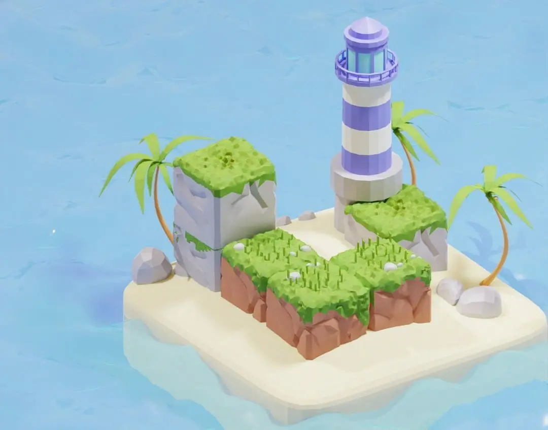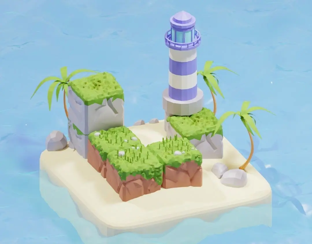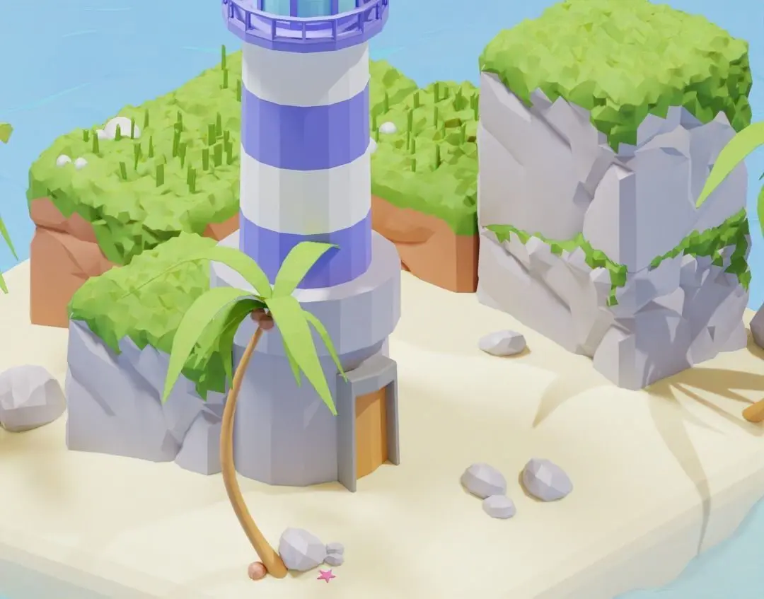 Low poly 3D scene of summer island. With summer and warm vibes. Can be used for website design needs or game asset.