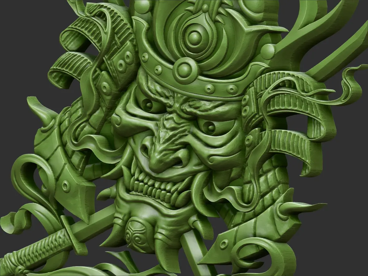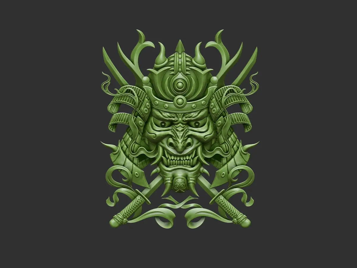 3d model of bas-relief of the sumurai head ready for CNC Router Carving or 3d printer.OBJ,STL format.