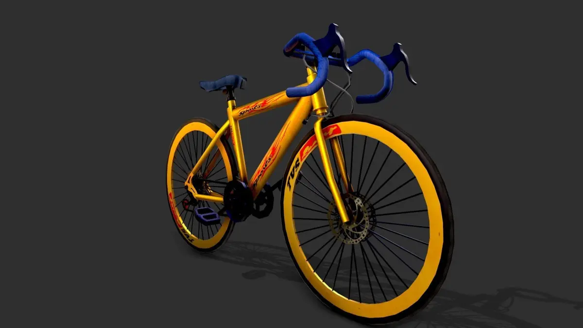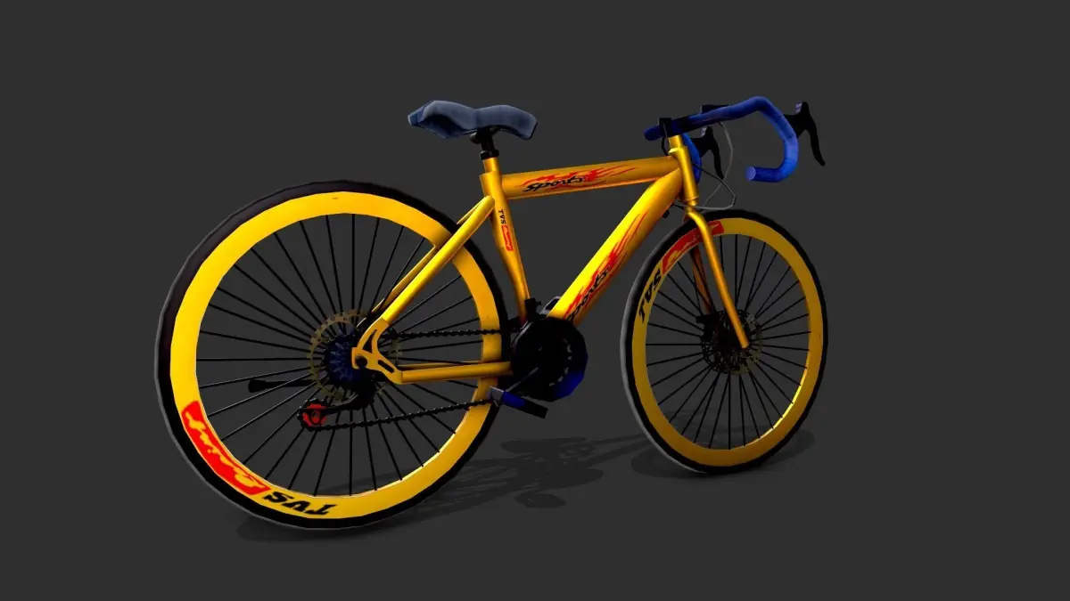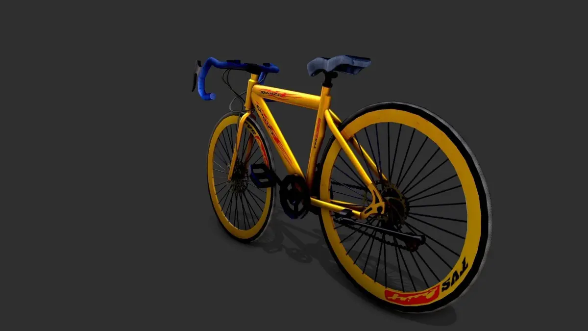 This asset is designed with vibrant yellow color. This model can be used in bicycle games, and racing games. This bicycle comes along with rear & front brakes and gears. The bicycle tyres are also big.