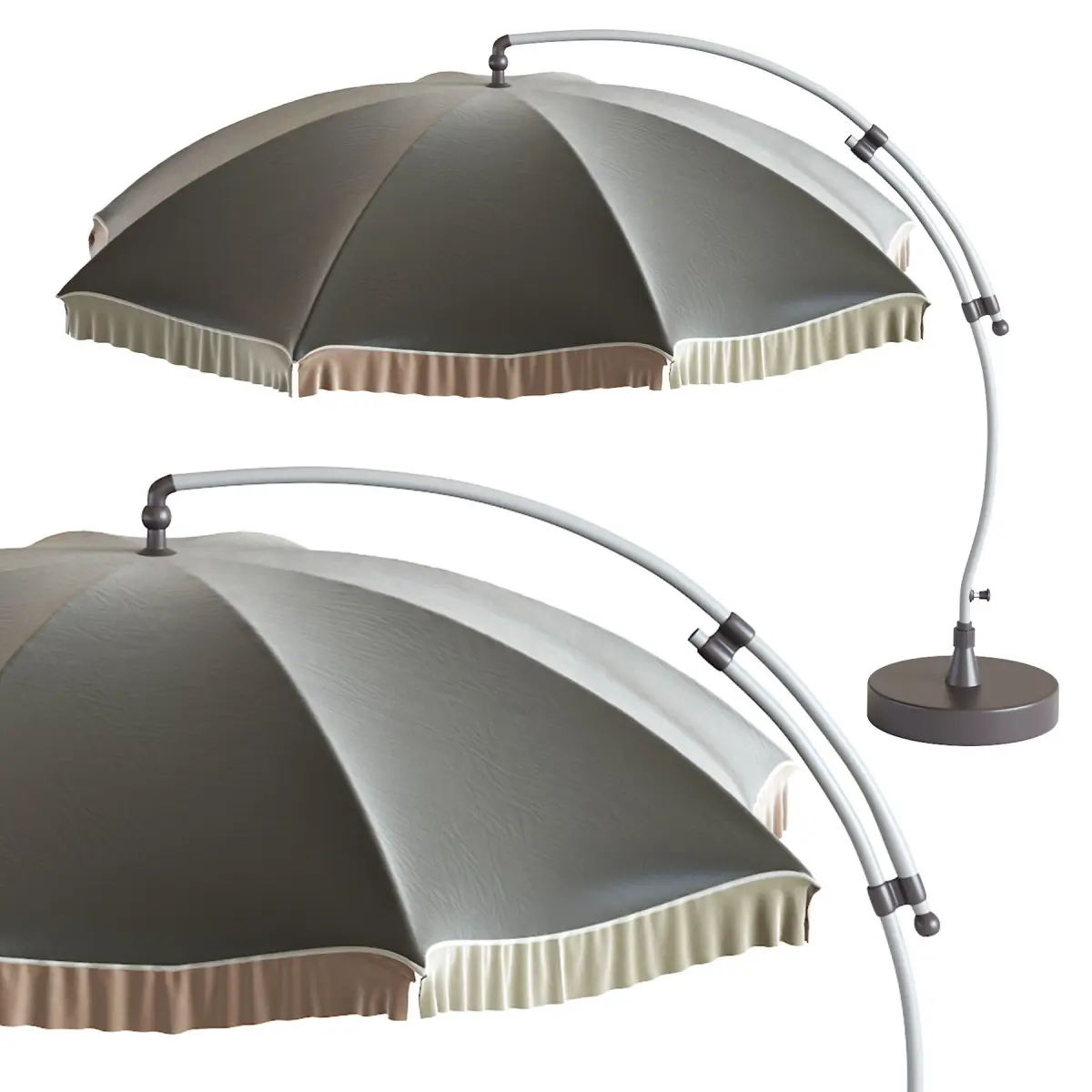 Hand-held umbrellas have a type of handle which can be made from wood, a plastic cylinder or a bent crook handle (like the handle of a cane). Umbrellas are available in a range of price and quality points, ranging from inexpensive, modest quality models sold at discount stores to expensive, finely made, designer-labeled models. Larger parasols capable of blocking the sun for several people are often used as fixed or semi-fixed devices, used with patio tables or other outdoor furniture, or as points of shade on a sunny beach.