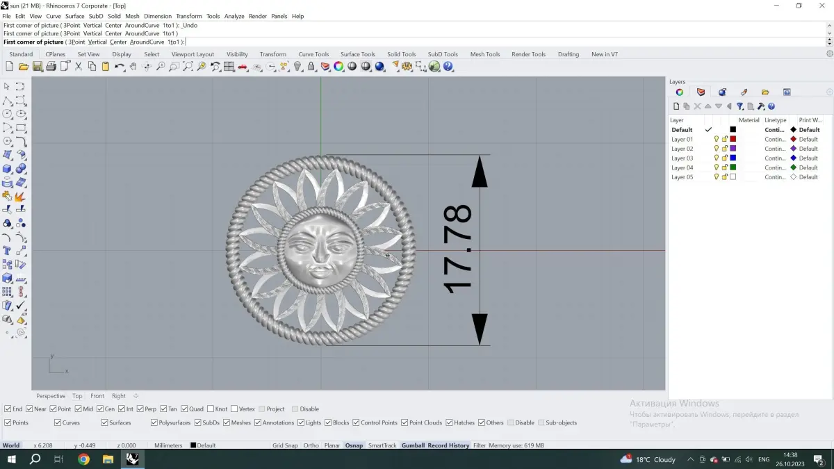 Round pendant with the image of the sun. The sun represents vitality, passion, courage and eternal youth. As a source of light, it symbolizes knowledge and intelligence.