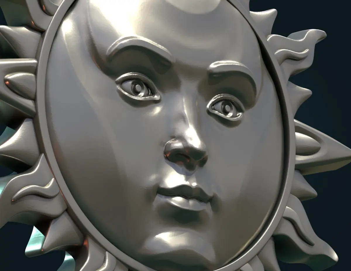 Print ready sun with face pendant.