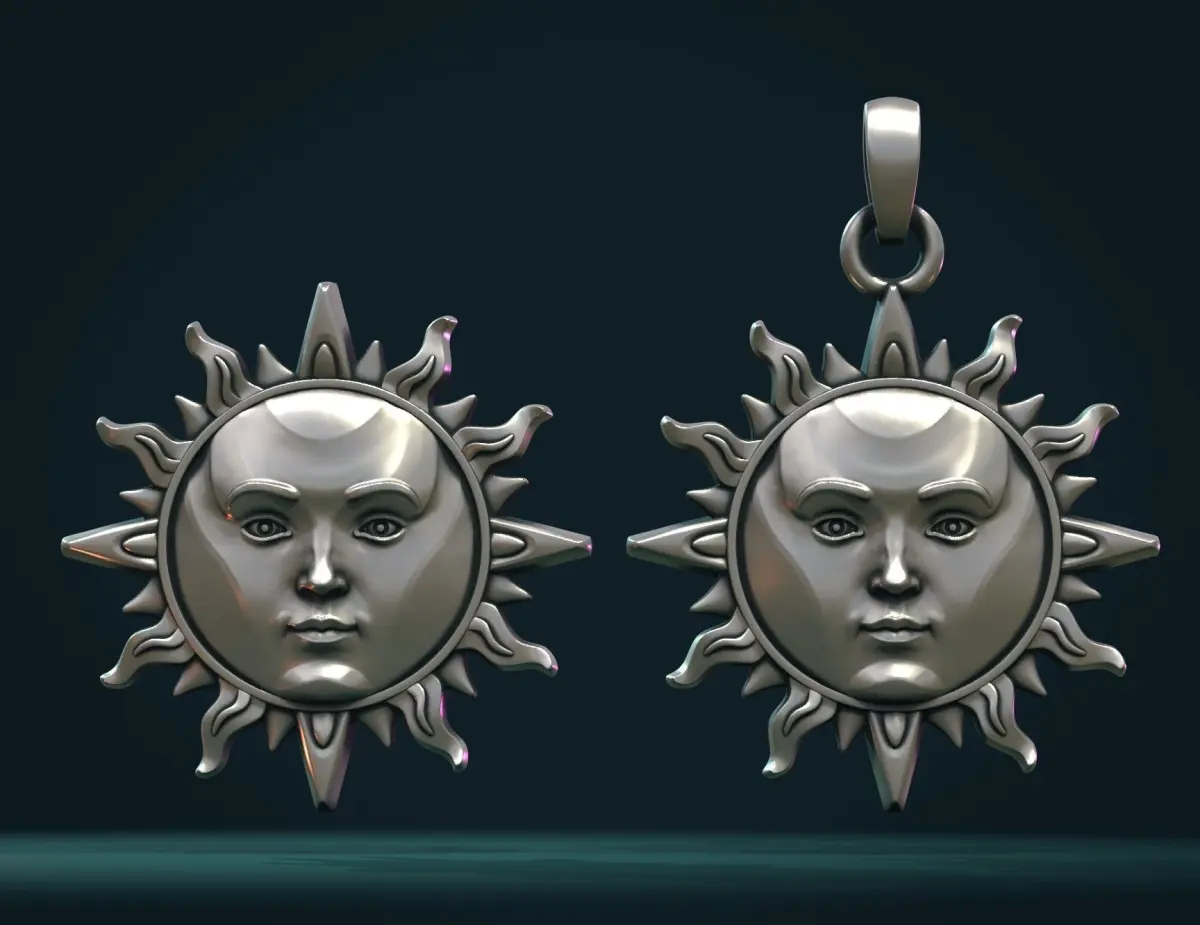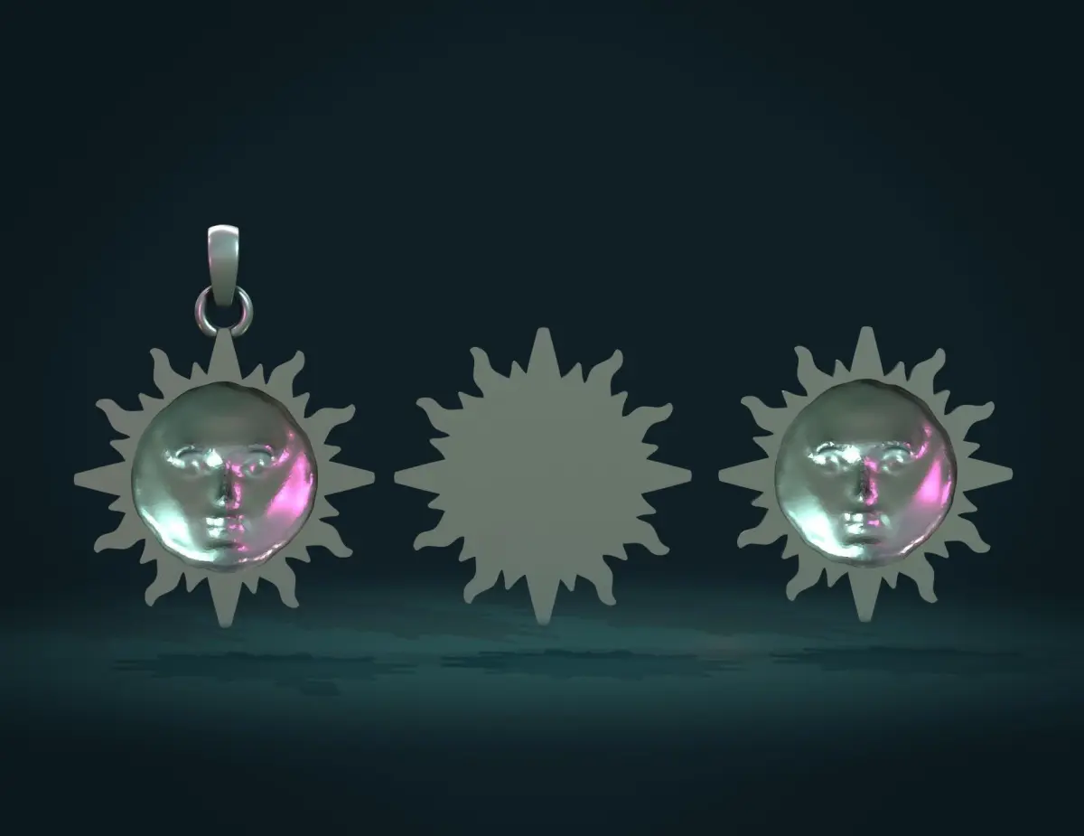 1) Sun_pendant (.blend, .stl, .obj, .fbx) 236934 triangular faces. Here is the pendant. In case of .stl a bail available in separate file.