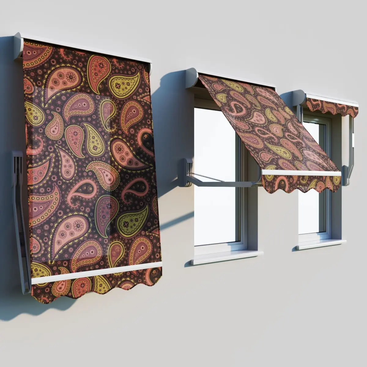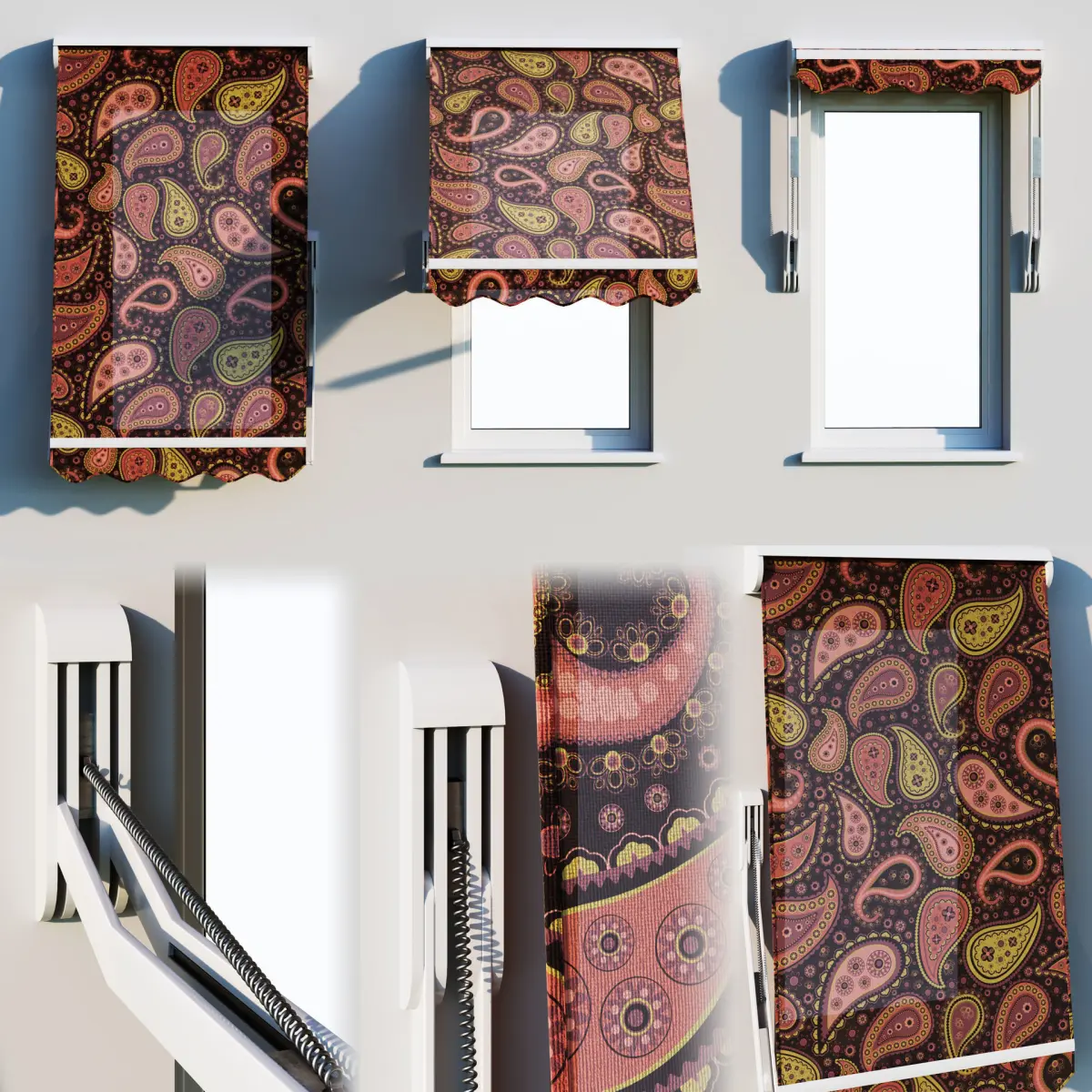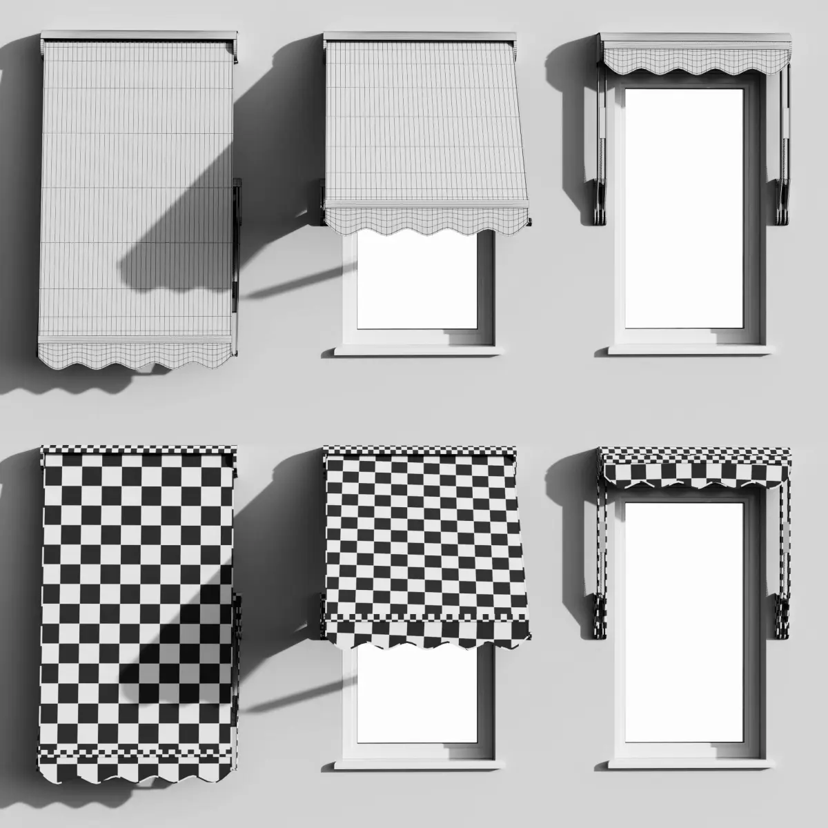 Folding canopy.Three disclosure options: maximum disclosure (160 degrees for technical specifications), 90 degrees, and a fully enclosed marquiseThree fabric options. Translucensy is present. On displasement - crumpled fabric textureAll marquise details with good mapping - you can change materials as you wish