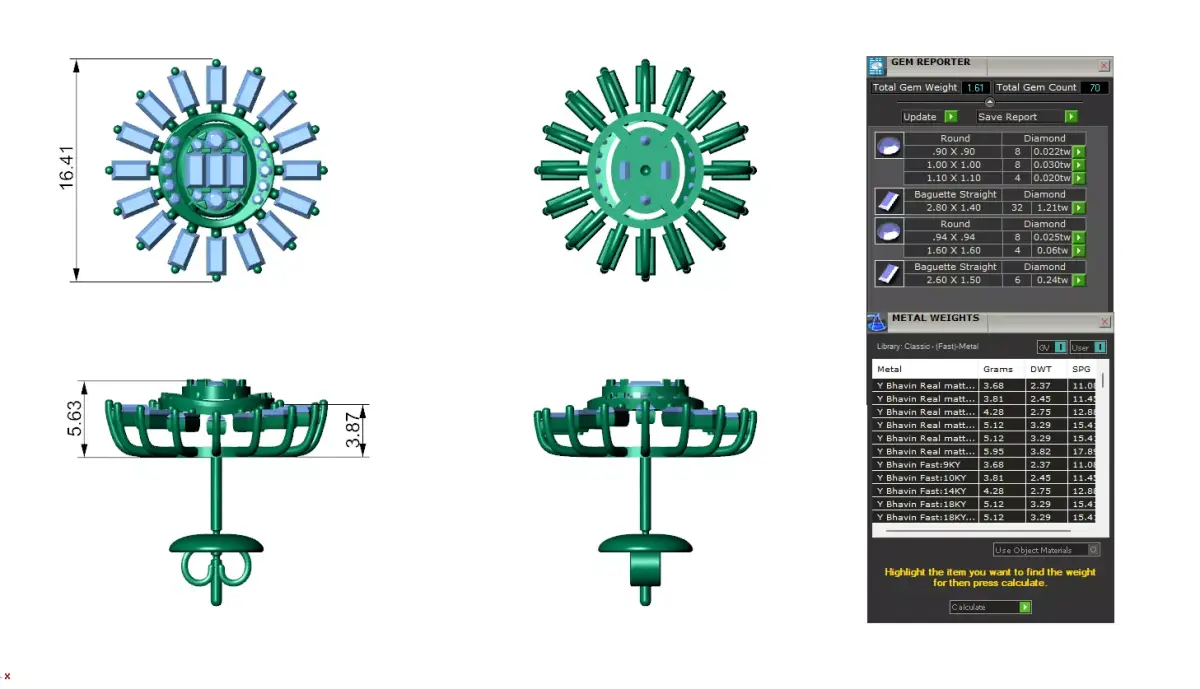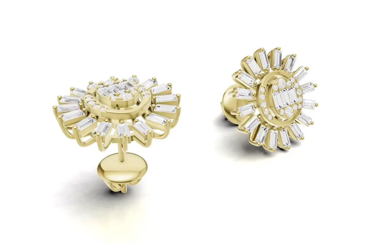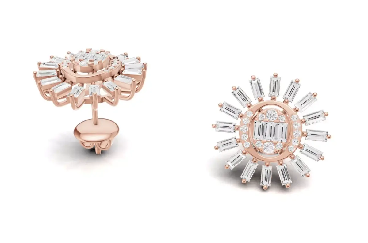 Sunburst Baguette Diamond Stud Earrings 3D print model