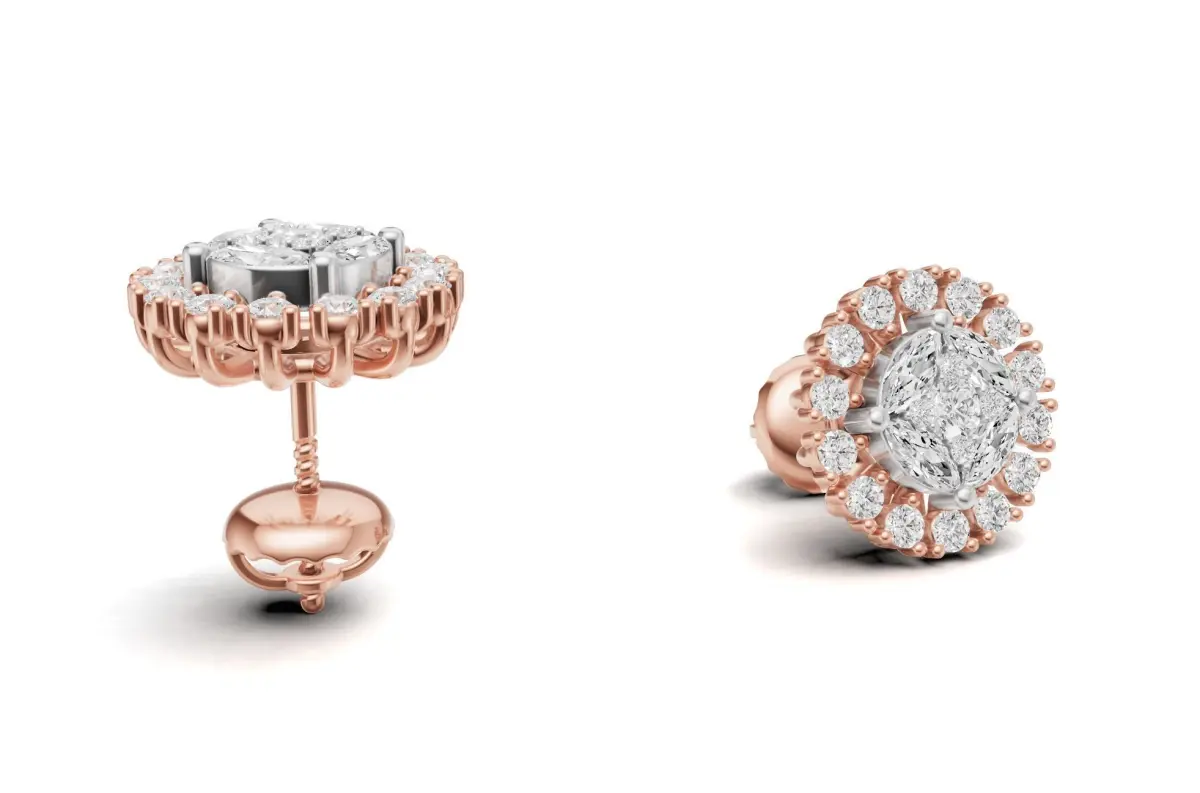 Sunburst Diamond Cluster Stud with Marquise Diamond 3D print model