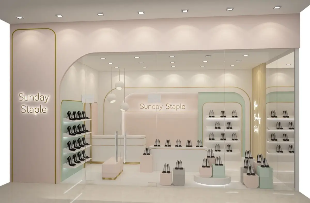 Sunday Staple is a shoe shop in the city. Pastel colour and elegant.