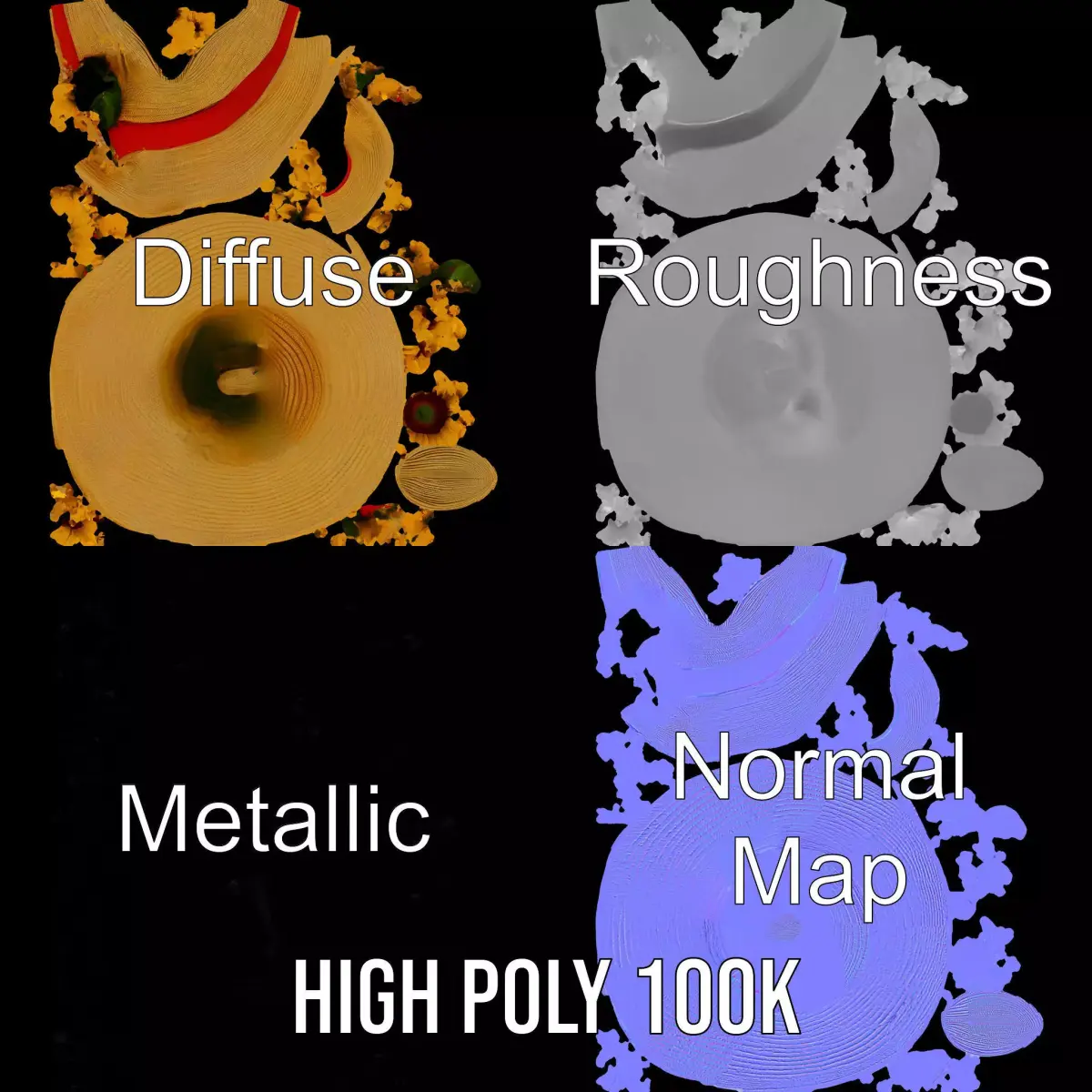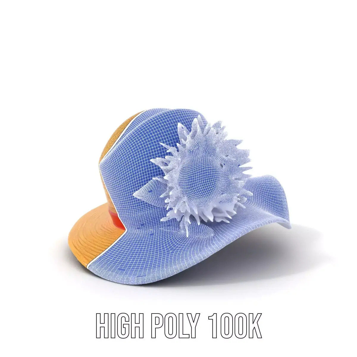 This stylish straw hat features a vibrant sunflower decoration, perfect for adding a touch of summer to any scene. Each model has 3 levels of detail: low-poly (1000 triangles for mobile), middle-poly (10,000 triangles for environment), and high-poly (100,000 triangles), which allows for the use of this model in production rendering (such as 3ds Max, Maya, Cinema 4D, Blender, V-Ray/Corona/Cycles, and all others), game engines (Unity and Unreal compatible), and interactive presentations, providing a choice of detail based on the LOD System principle. Ideal for virtual fashion shows, summer-themed simulations, and animated accessories. The model's textures are PBR, Diffuse, NormalMap, and reflection/roughness/metallic, suitable for any modern rendering engine. All models are accurately unwrapped and have no overlapping UV. All textures are 4096x4096 in size. If you like the model, please leave a comment and a like!