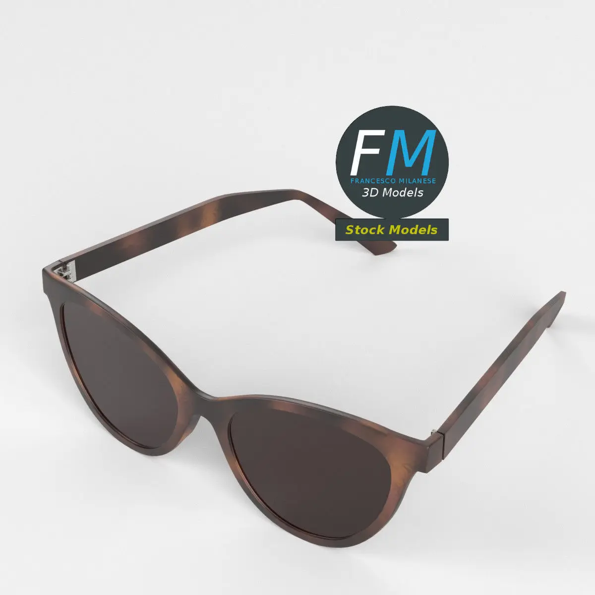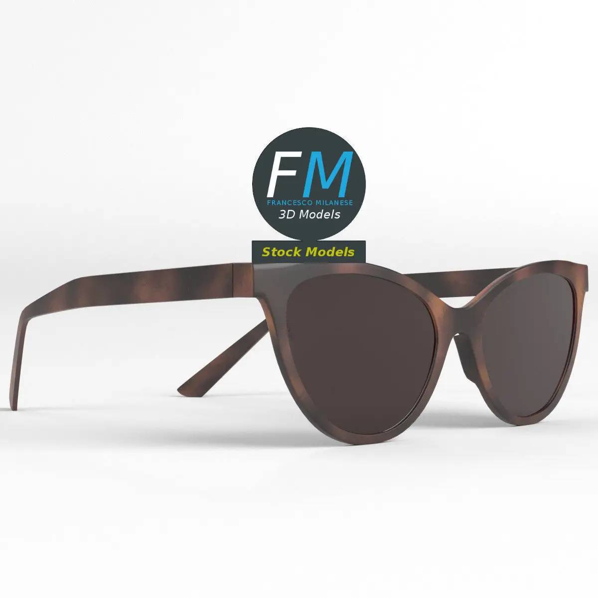 Sunglasses foxy 3D Model. 3 individual objects (frame with lenses, right temple, left temple; so, you can easily rotate or even animate them), sharing the same non overlapping UV Layout map, Material and PBR Textures set. Production-ready 3D Model, with PBR materials, textures, non overlapping UV Layout map provided in the package.Quads only geometries (no tris/ngons).Easily customizable: UV unwrapped geometries, so you can create new Textures (or modify the existing ones) using the UV Layout maps provided in the package (as png with alpha).Each Object, Material or Texture provided in the package has a unique, meaningful name.Made in Blender 3.1 with a Cycles PBR shader with textures included (principled and Eevee compatible), then exported to OBJ and FBX; materials and textures made in Substance Painter, exported for PBR, V-Ray, Unity, Unreal.PROMO IMAGES: the first image has been rendered in Cycles for Blender; in particular, you can find 11+ promo images in this description: