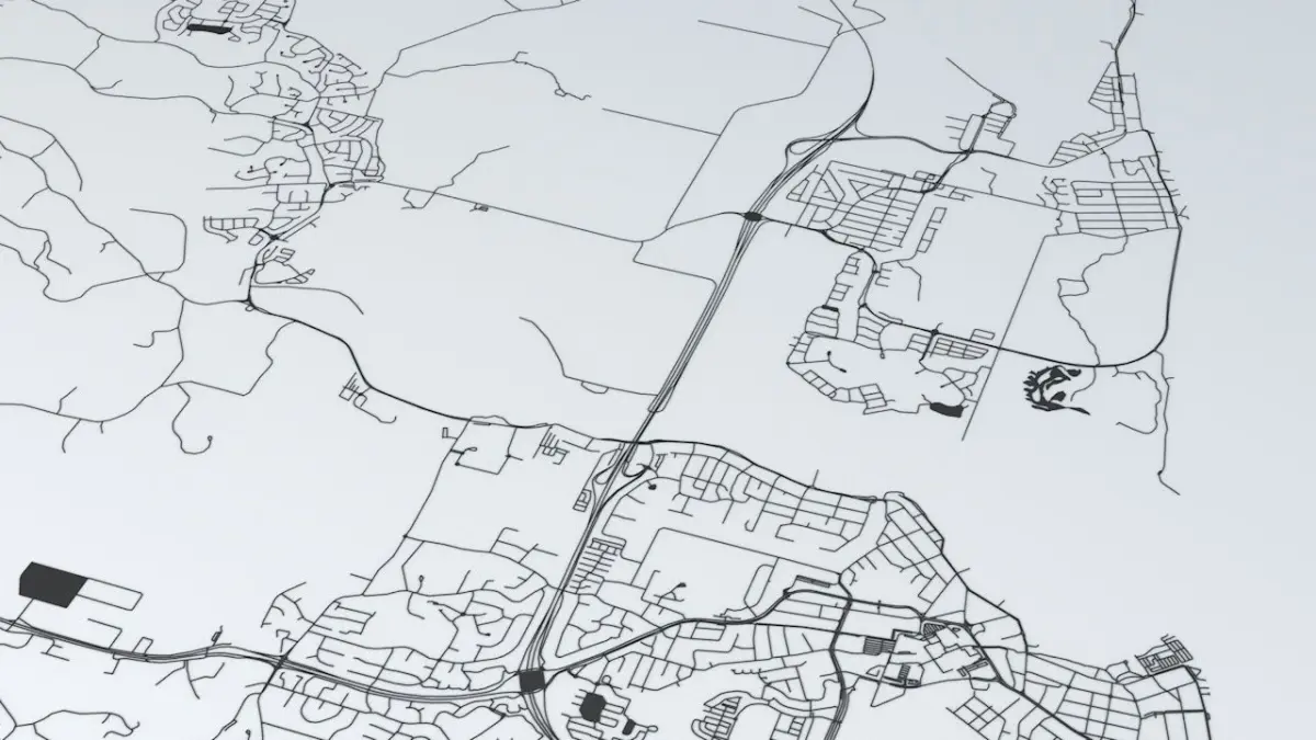 - the model is positioned on a flat surface (road network is on the “floor” - no elevation data included)