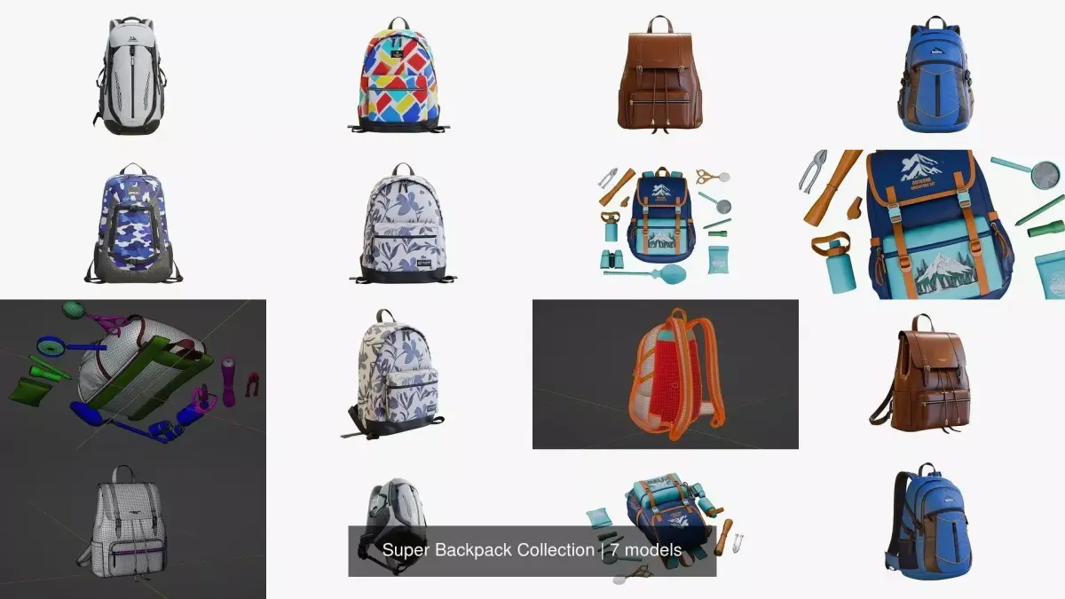 3.Sports products Hiking BackpackHiking Backpack 3d Model: Characteristic > A spacious hiking backpack in a neutral gray color. The backpack has multiple compartments, padded shoulder straps, and a waist belt for added comfort.