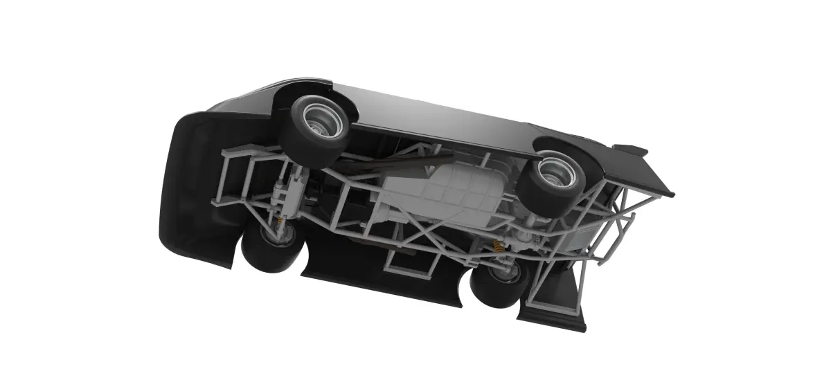 The model consists of parts: Air filter cap, Air filter, Body, Engine, Hood, Left exhaust pipe, Radiator, Rear spoiler, Right exhaust pipe, Rims, Seat part 1,2, Shell part 1,2, Shifter, Steering wheel, Tank, Tires, Top bar.