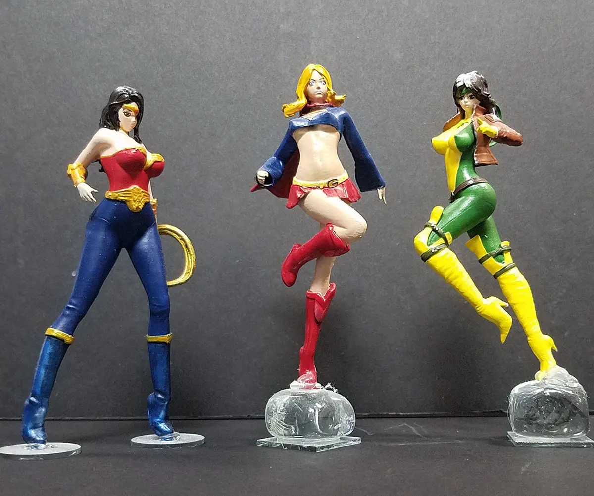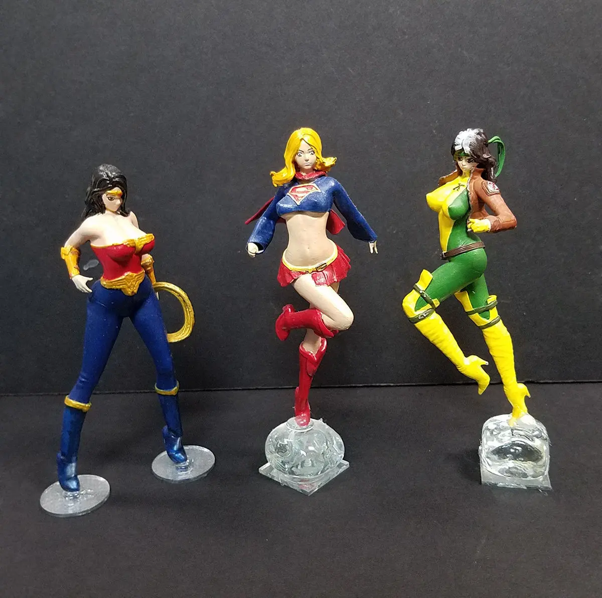 This is a collection of my favorite personal prints and paintable miniatures at a discount for the bundle. Included are Fan-Arts of Wonderwoman, Rogue, and Supergirl! There are keyed and full versions. For the bases I used mirrors for extra light bounces. Enjoy and happy painting. Let me know which printer you used and how they turned out. Also feedback is much appreciated! Thank You!