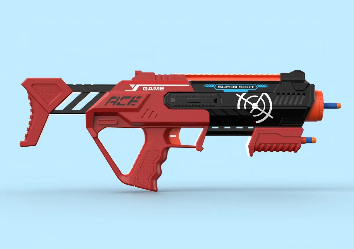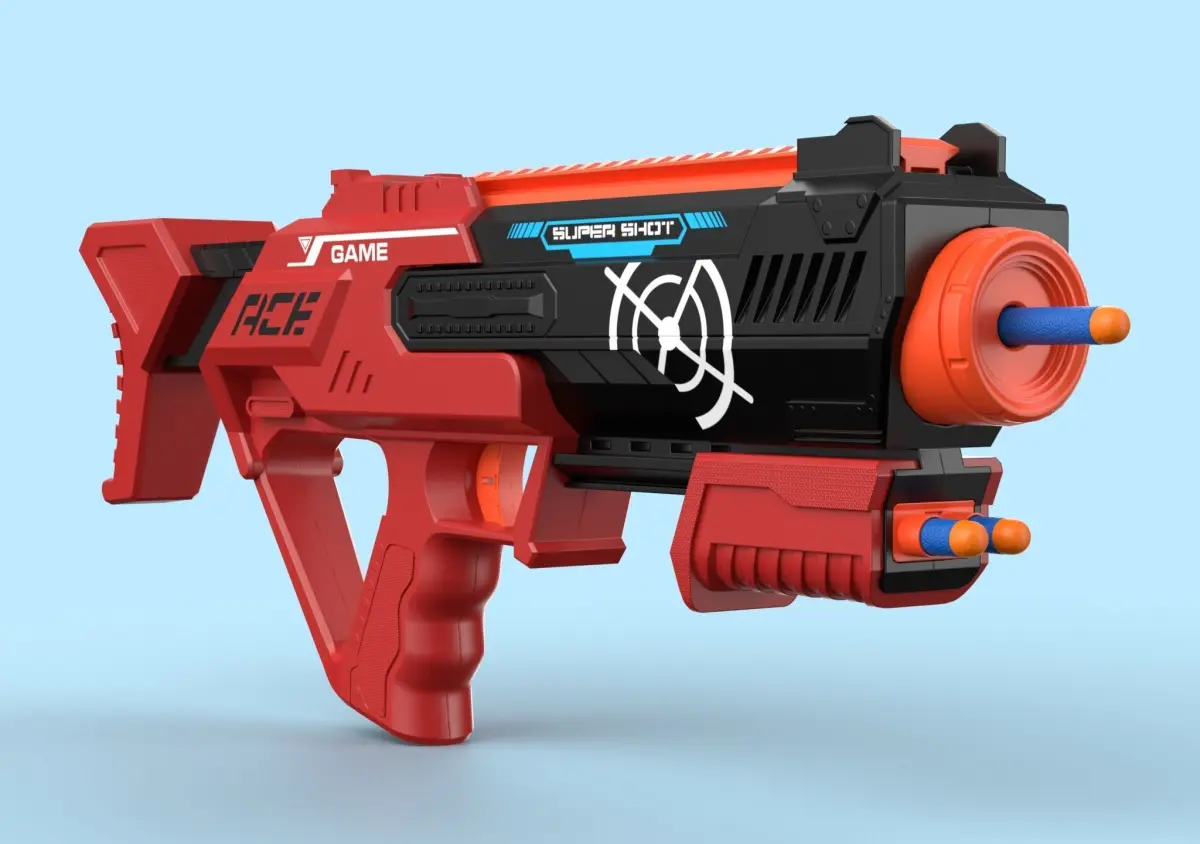 Super Shot toy gun for children. Realistic 3D model. The template is suitable for any game-ready visual production - broadcast, advertising, design visualization and other devices.