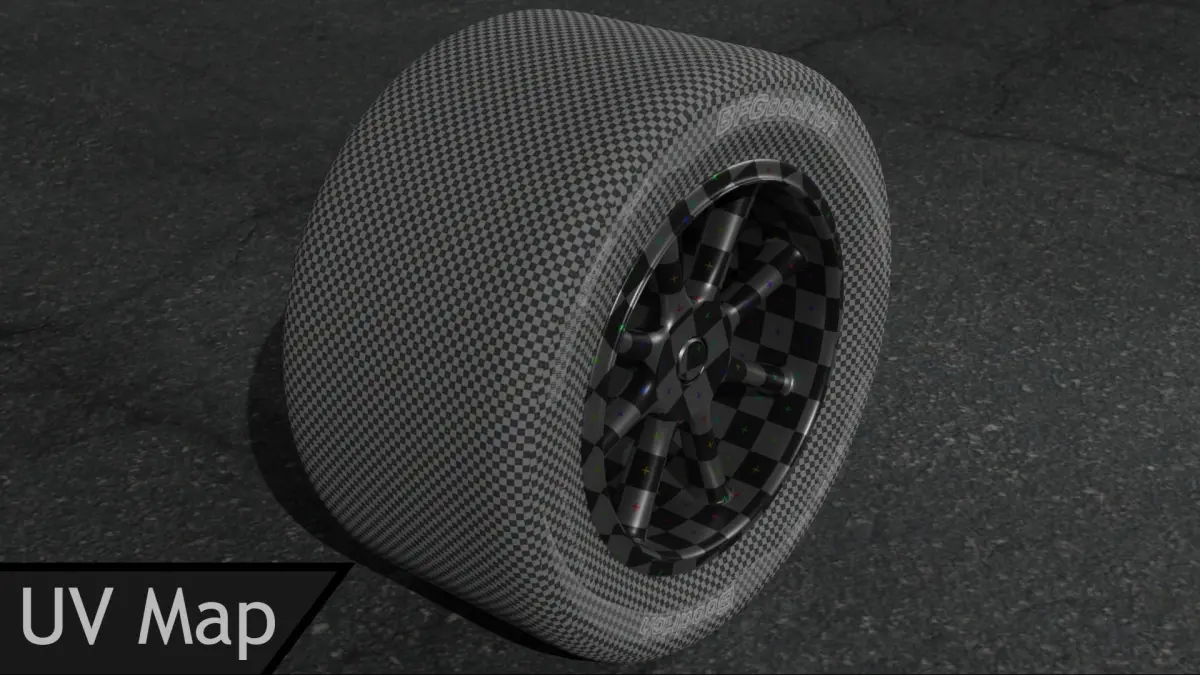 A simple wheel & tire combo that was not based off of any real tire or wheel, so the sidewall texture won't have accurate measurements it is just used for looks. The model has already been optimized with unnecessary faces being deleted.