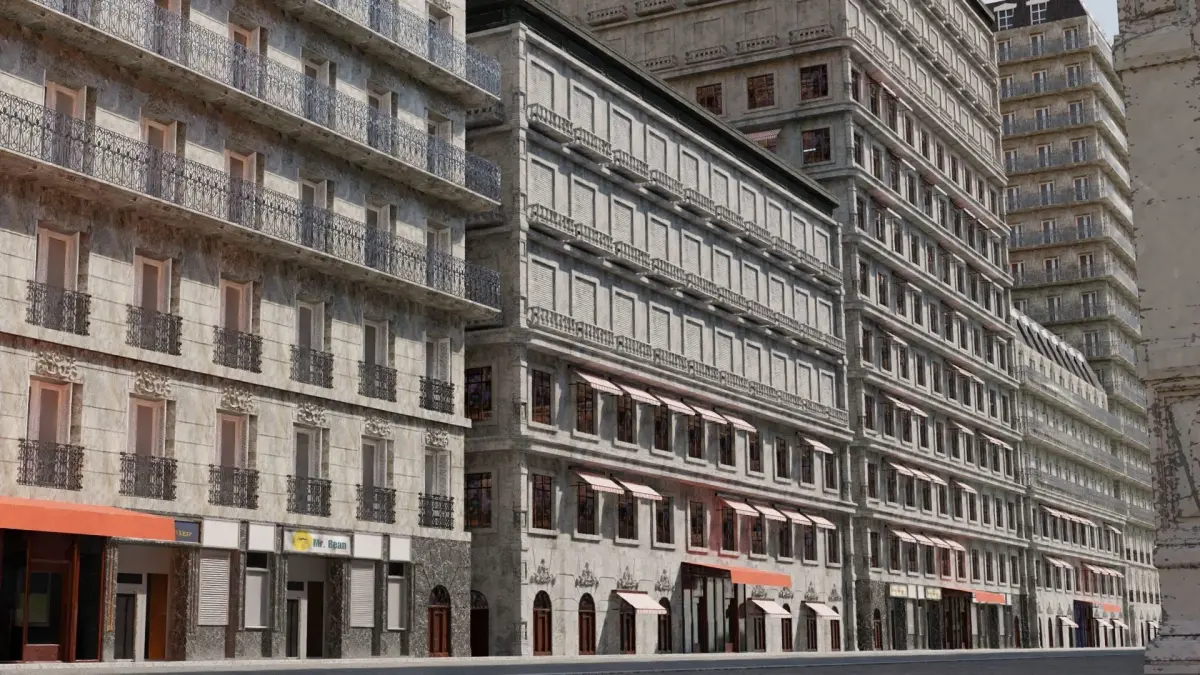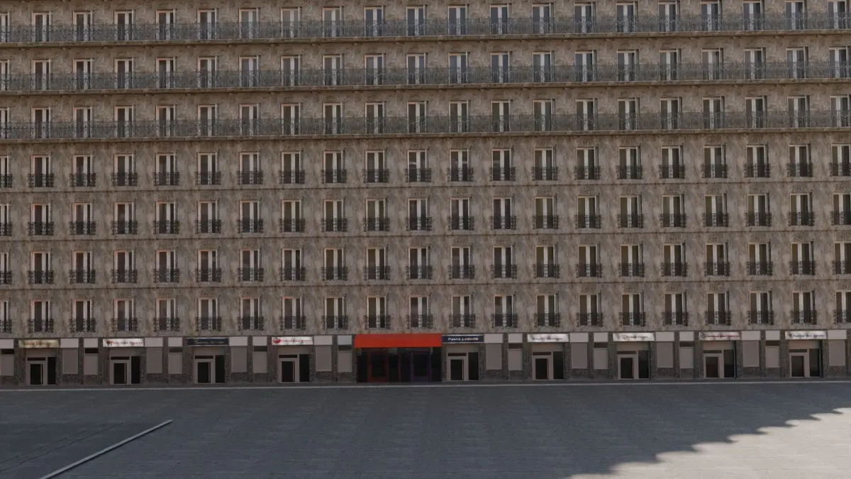 it has 2 unique buildings, it's a kind of classical building i would say, and few more buildings that is mix and matched the assets,