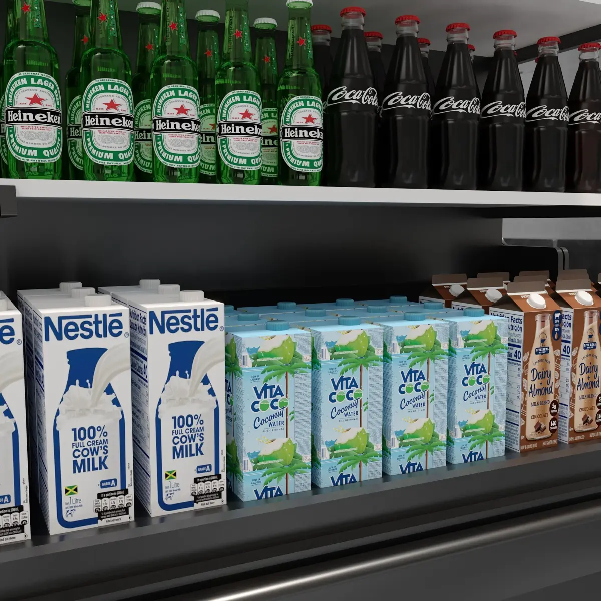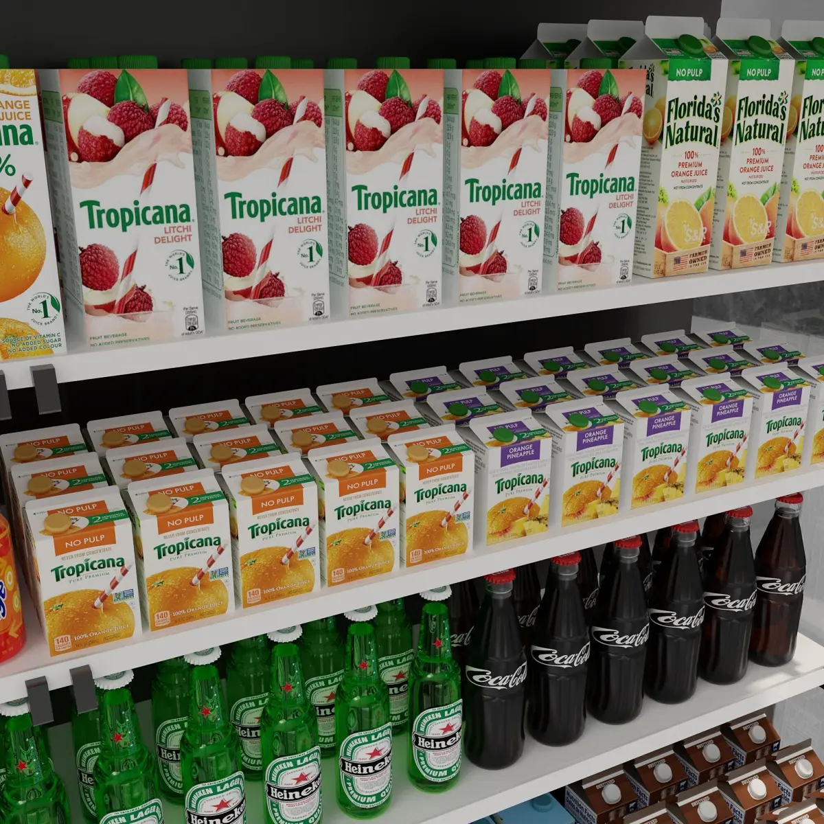 the model includes a fridge with juice box,milk box,coke ,and....