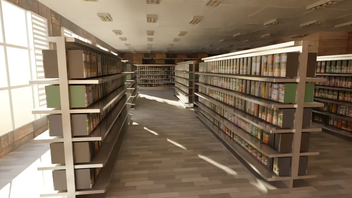 Supermarket interior. Blender, Fbx, Obj, Stl and Gltf file are available.It is designed to be used in every field, including games.Textures are embedded in fbx.Textures are also embedded in Blender and Gltf files.