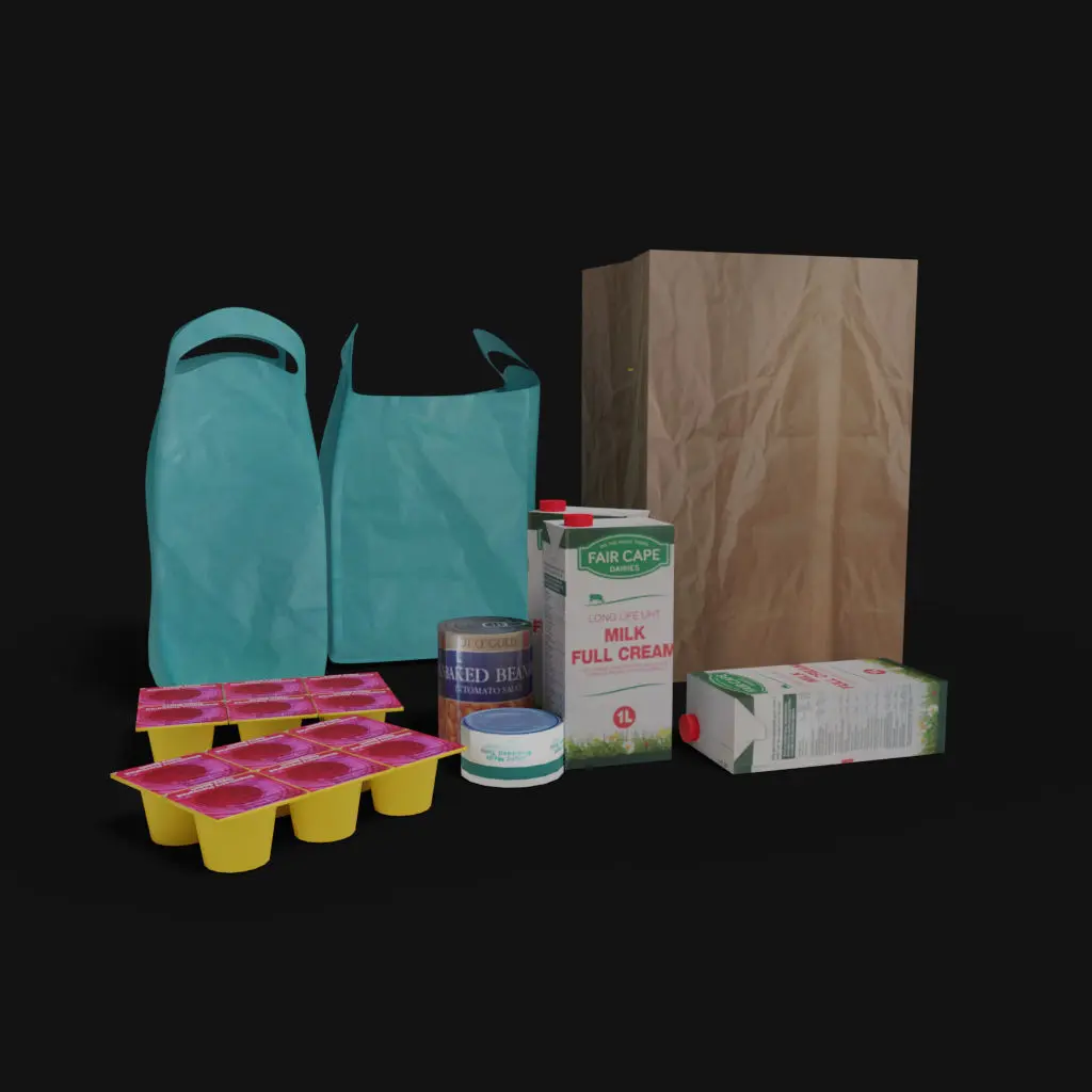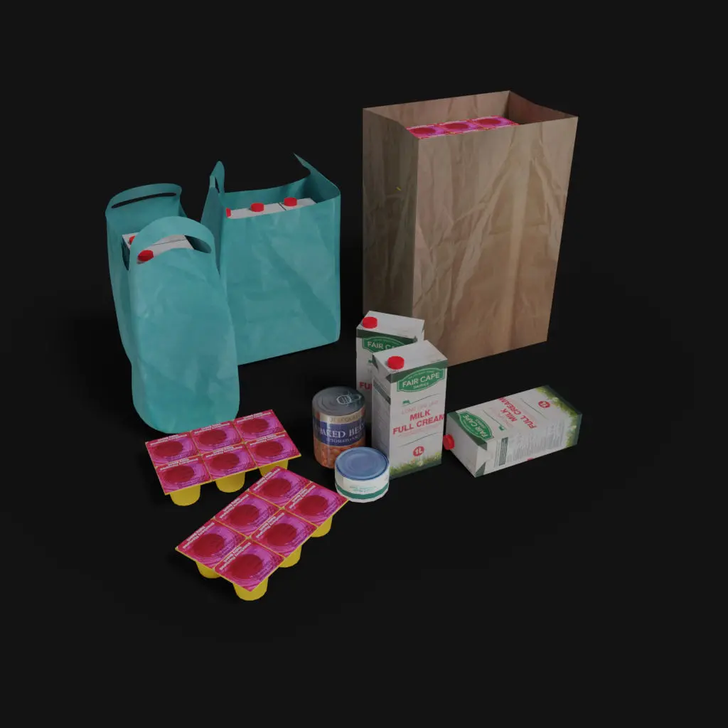 Standing fridgeThe model consists of 4 notable pieces of 3d mesh when opened:Individual elements - can be used to assemble a custom scene to your liking. I recommend just using array to nake up the length, then sape cthe end caps to finalize the model to your lengthA pre built wall fridge configurationA pre built Ailse frige or refrigirated areaA single fridge configurationThe strore grocery products on shelf in the open freezer is as follows: Product Included: Bottles: Juiced, Clover Duo Krush Orange, Red Grape, Guava, Mango, Clover Tropika, Mango peach, Tropical, Pineapple Henties, Guava, Orange, Butters and spread, margarine Rama, Stork, Sunshine D Ole,
