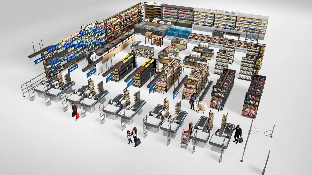 Elevate your retail design projects with this comprehensive 3D model set of supermarket shop store builder elements. This collection includes a wide range of meticulously crafted components such as shelves, shopping carts, checkout counters, signage, display racks, refrigerators, and more. Designed with high-quality textures and realistic details, these elements allow you to build a fully functional and visually appealing supermarket or retail store. Each piece is fully customizable, so you can adjust colors, materials, and layouts to fit your specific project needs. Whether you're visualizing a small grocery store, a large supermarket, or a boutique retail space, this model set is perfect for creating immersive and functional retail environments. Compatible with popular 3D software, this collection ensures seamless integration into your projects. Ideal for architects, interior designers, and 3D artists, these builder elements provide the essential tools to design professional and detailed retail spaces, from product displays to checkout areas. Enhance your portfolio with this versatile 3D model set, designed to create realistic and dynamic supermarket layouts.