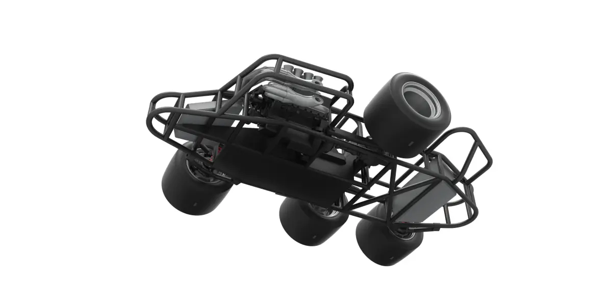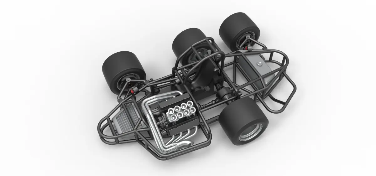 The model consists of parts: Air intake, Body, Engine, Left exhaust pipes, Radiator, Right exhaust pipes, Rims, Shifter, Steering wheel, Tank, Tires.