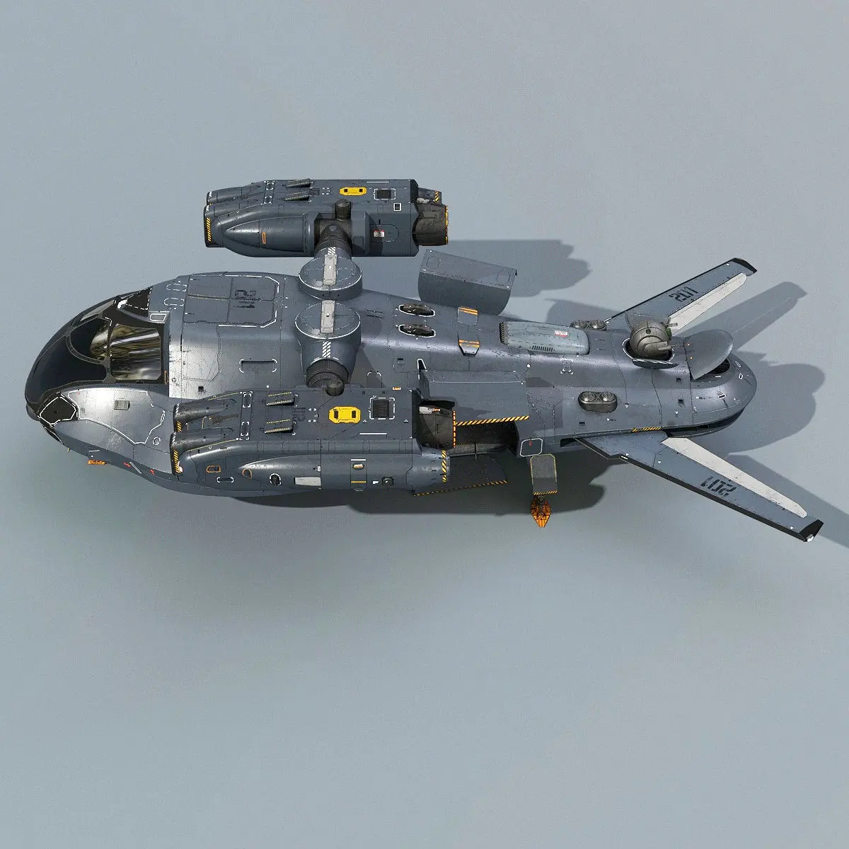 3D model of the Sci-Fi support spaceship. Model is real world scale -24.5x16.5x6.8 meters.