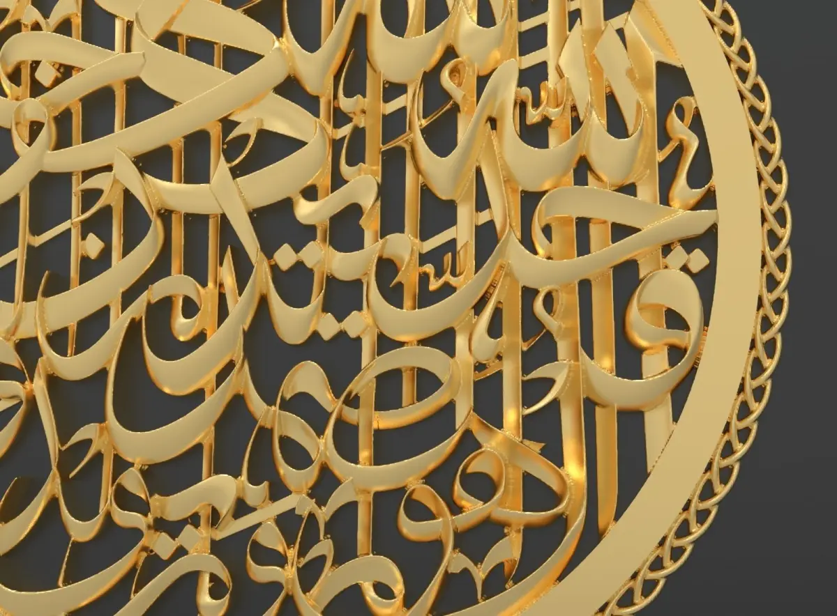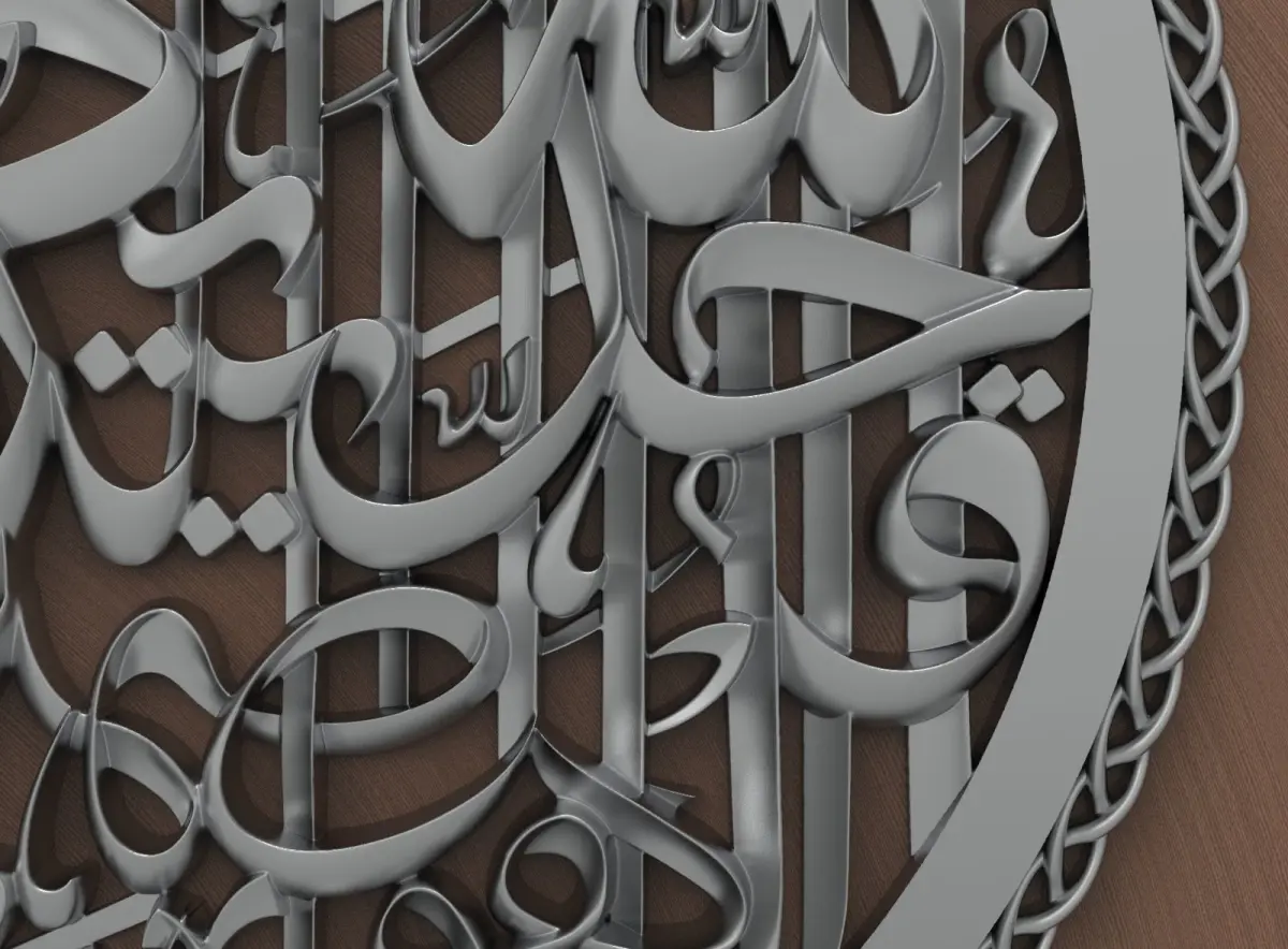a 3d model of surah Ikhlas written by arabic calligraphy .ready for cnc routers .various type of files for diffrent usage .dimensions : 80 * 80 cm .thichness of 30 mm . change dimensions as you want .