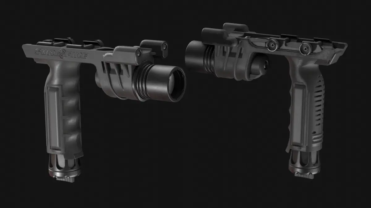 SureFire M900A Foregrip Vertical Weaponlight, a combination attachment that can be mounted on firearms with a Picatinny Rail. *Only the Vertical Foregrip Flashlight is available in this download. The Rifle and other attachments are NOT included. Please note that proportions may not be 100% correct. This model isn't made for 3D printing, it's a low poly asset made for use in games. *