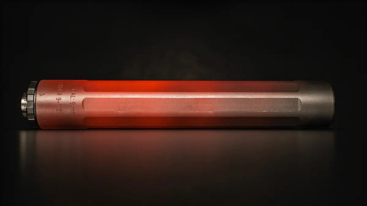 Game ready model of a Surefire Ryder 9-Ti2 Handgun Suppressor.