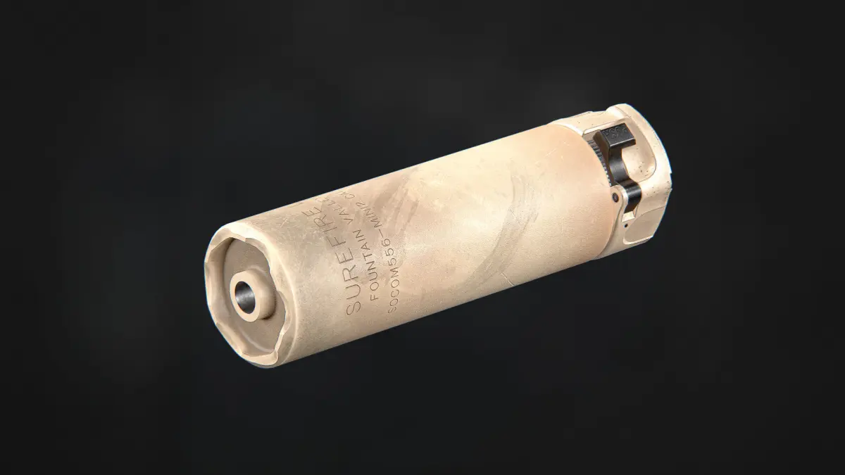 Available in two colours: Black and Sand, as a real thing. This one visually, is a shorter version of SOCOM556 RC2 suppressor.