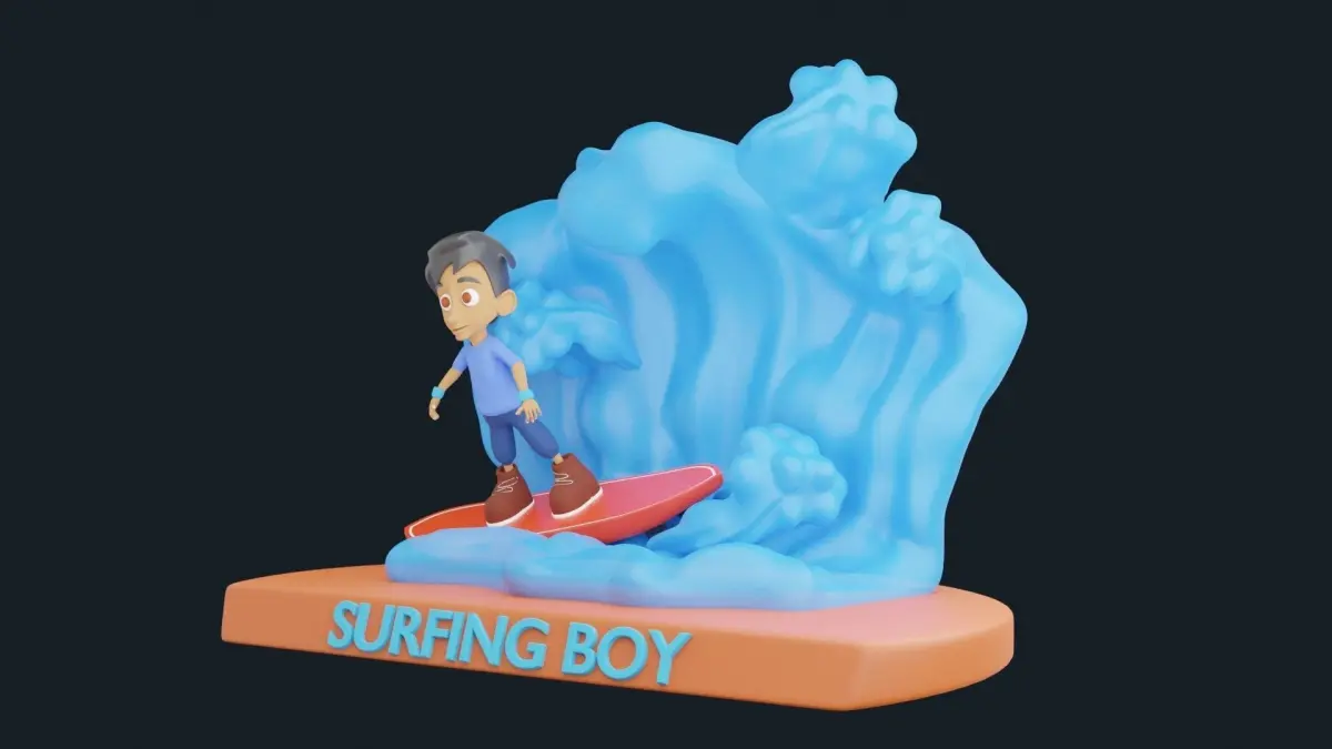 Surfing Boy modeled in blender 2.83 and rendered in cycles.