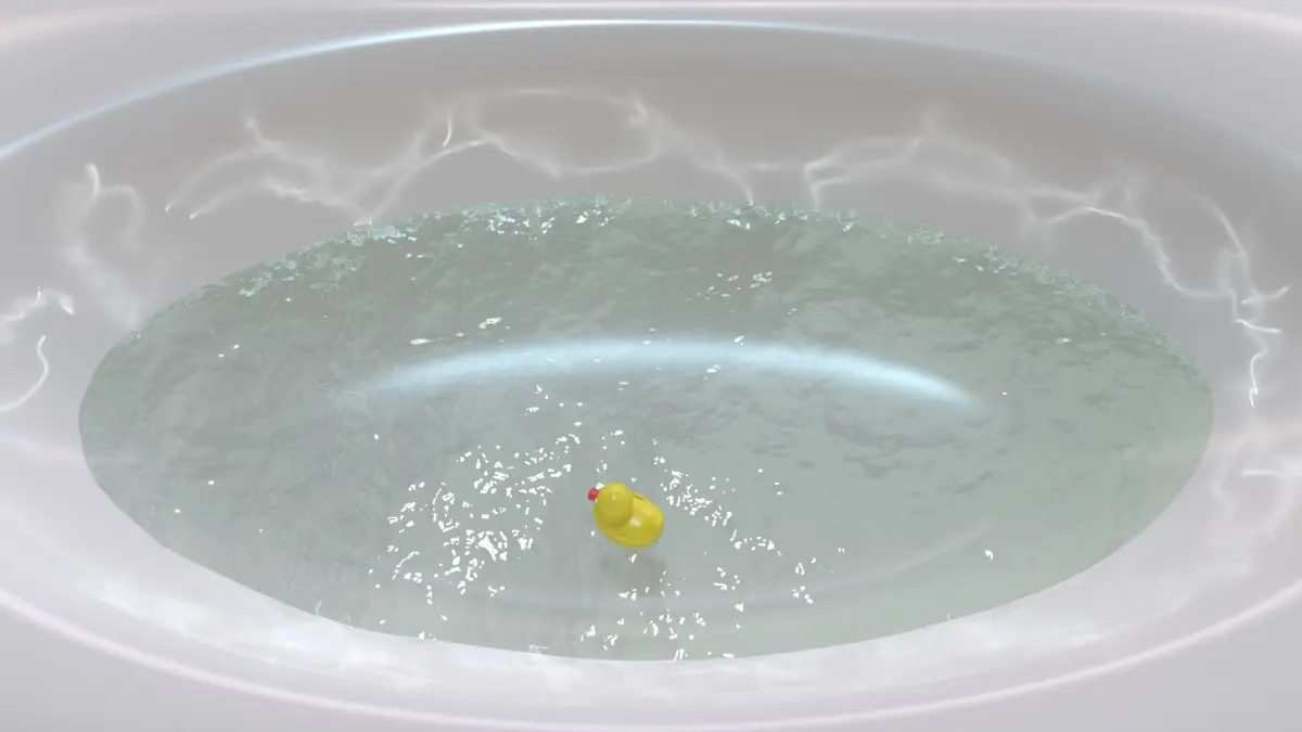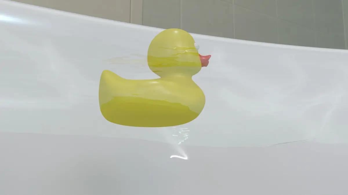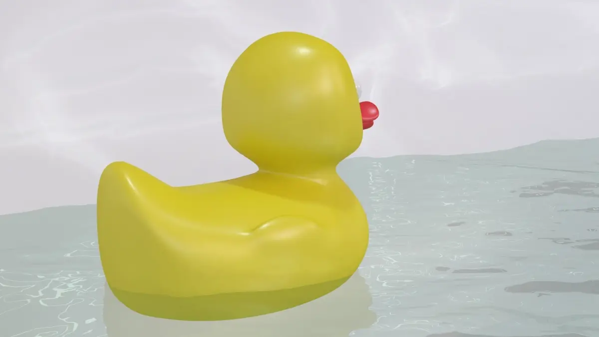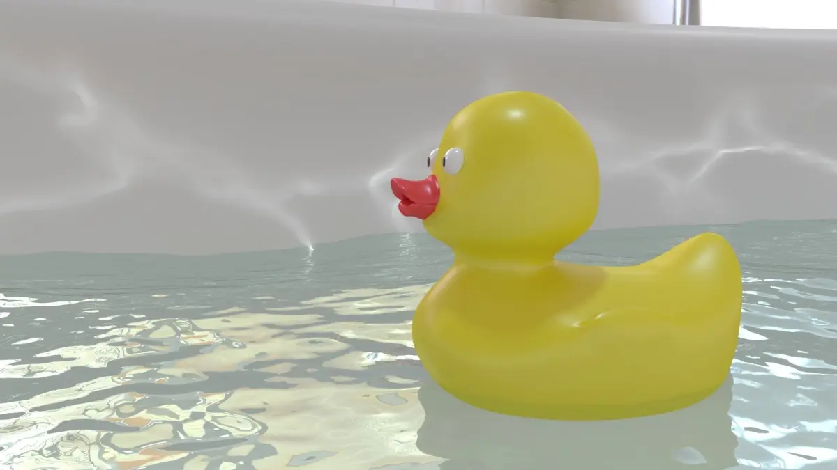 Surprised yellow rubber duck in a bath with water. Used HDRI map (in the archive). No texture, only cycles materials.