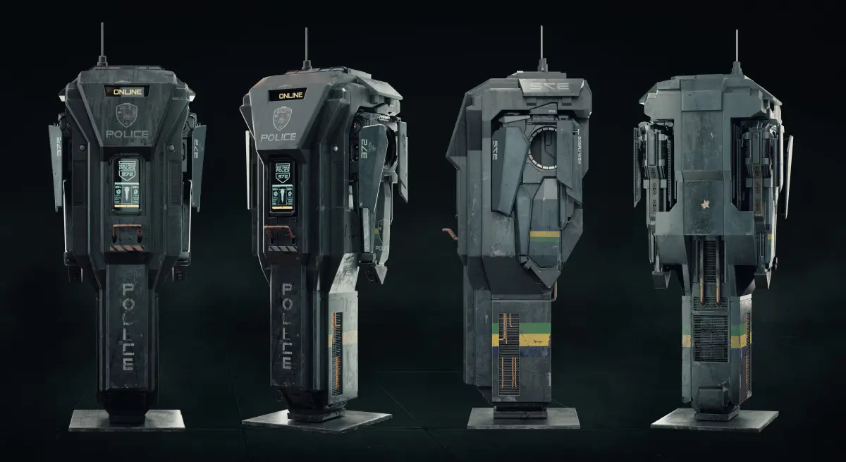 The Surveillance Drone from Eli's Quest Asset Pack is a highly detailed 3D model designed for use in sci-fi or Cyberpunk projects. It contains an autonomous drone and its home-station, which can host 2 drones for recharging. The model is created with great attention to detail and the UDIM workflow and 4k textures allow any close-up shot. Whether you're an experienced artist or just starting, the Futuristic Surveillance Drone is easy to implement and a valuable learning resource for those interested in 3d modeling, texturing and rigging.