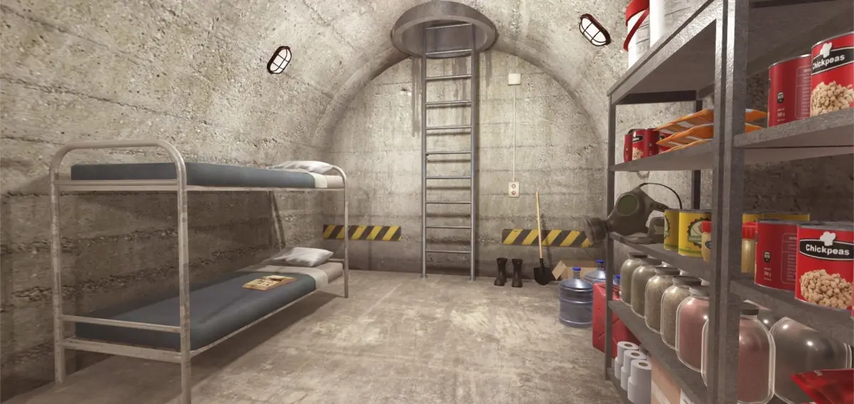 Interior of a survival bunker that can also be used as a nuclear bunker or an anti-zombie one originally created for Unity. There is a total of 50 models of first necessity goods and a great variety of objects like weapons, furniture...etc. There are also the FBX models included separately, textures included, to be used in other 3D apps. This low poly scene is ideal for games or applications.