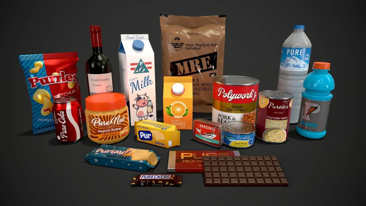 A low poly asset pack of drinks and foods.