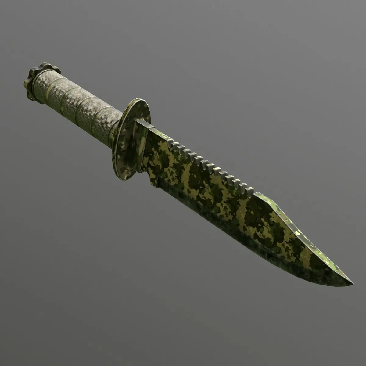 Survival Knife with camouflage paint. Optimised model for animations and games.