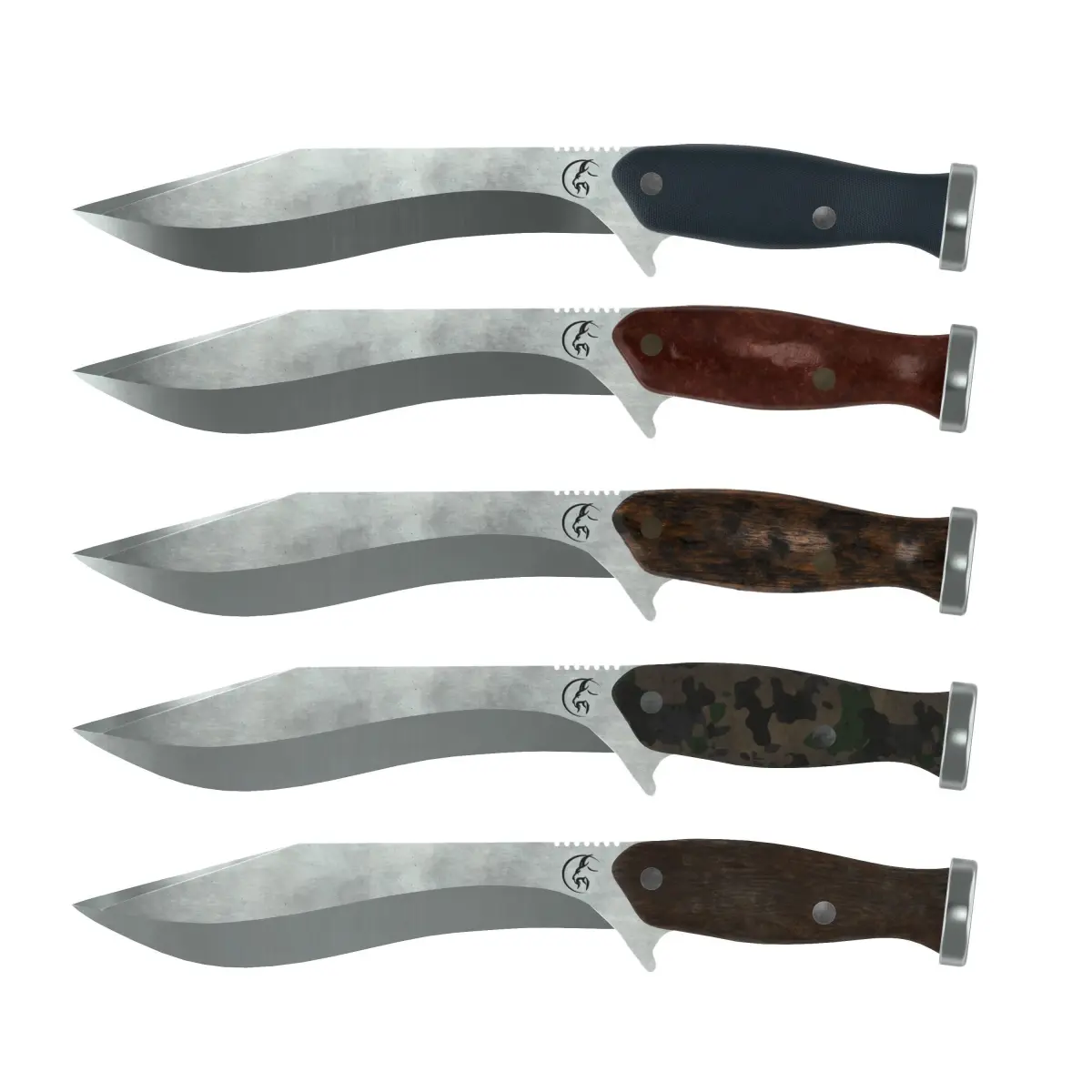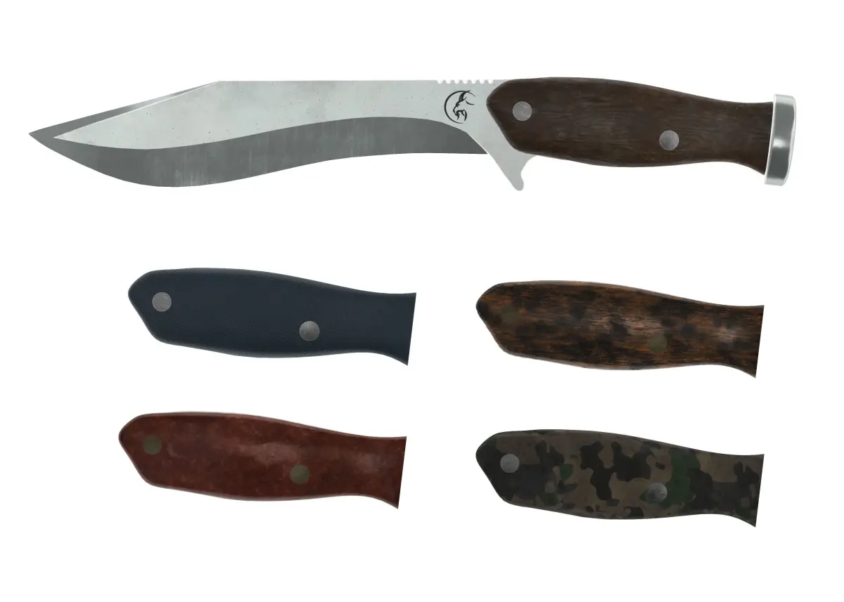 A very detailed Survival Knife (Model 1) with 4k High-Quality PBR Textures. The blade has a detailed scratched steel base and the handle has 5 skins wich you can choose.This knife is from a pack with 5 knives, this one is the Model 1.