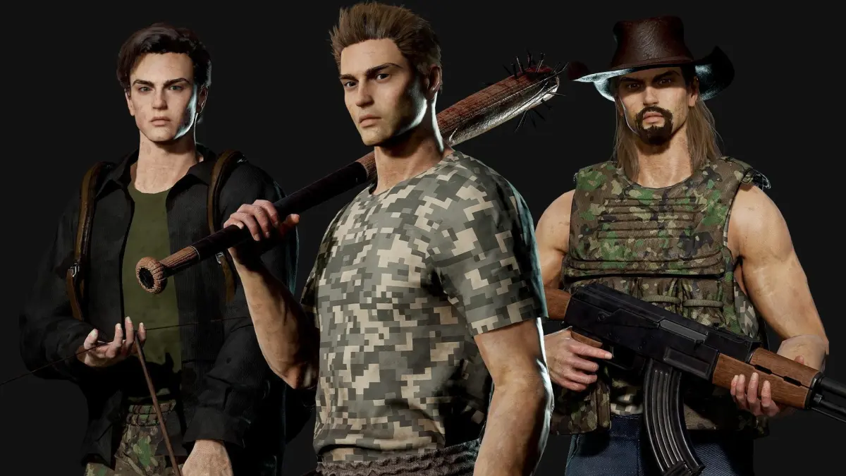 Base Textures are Gray for clothes, so you can easily change them to any color you want. Prints are also removable (military print, etc.)