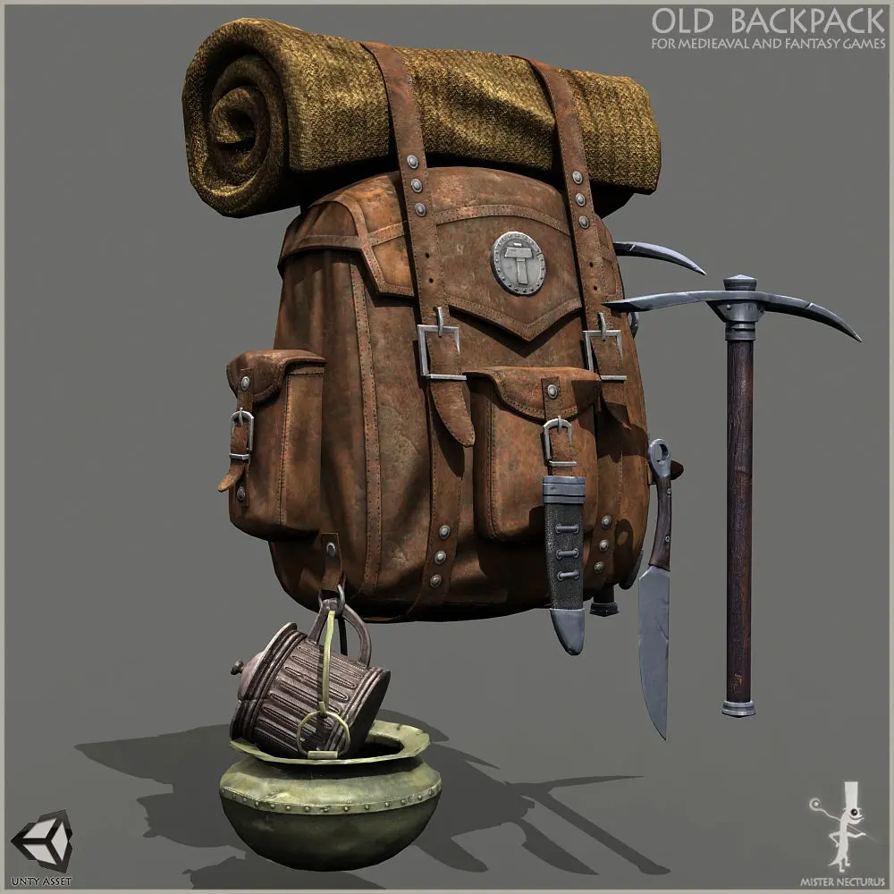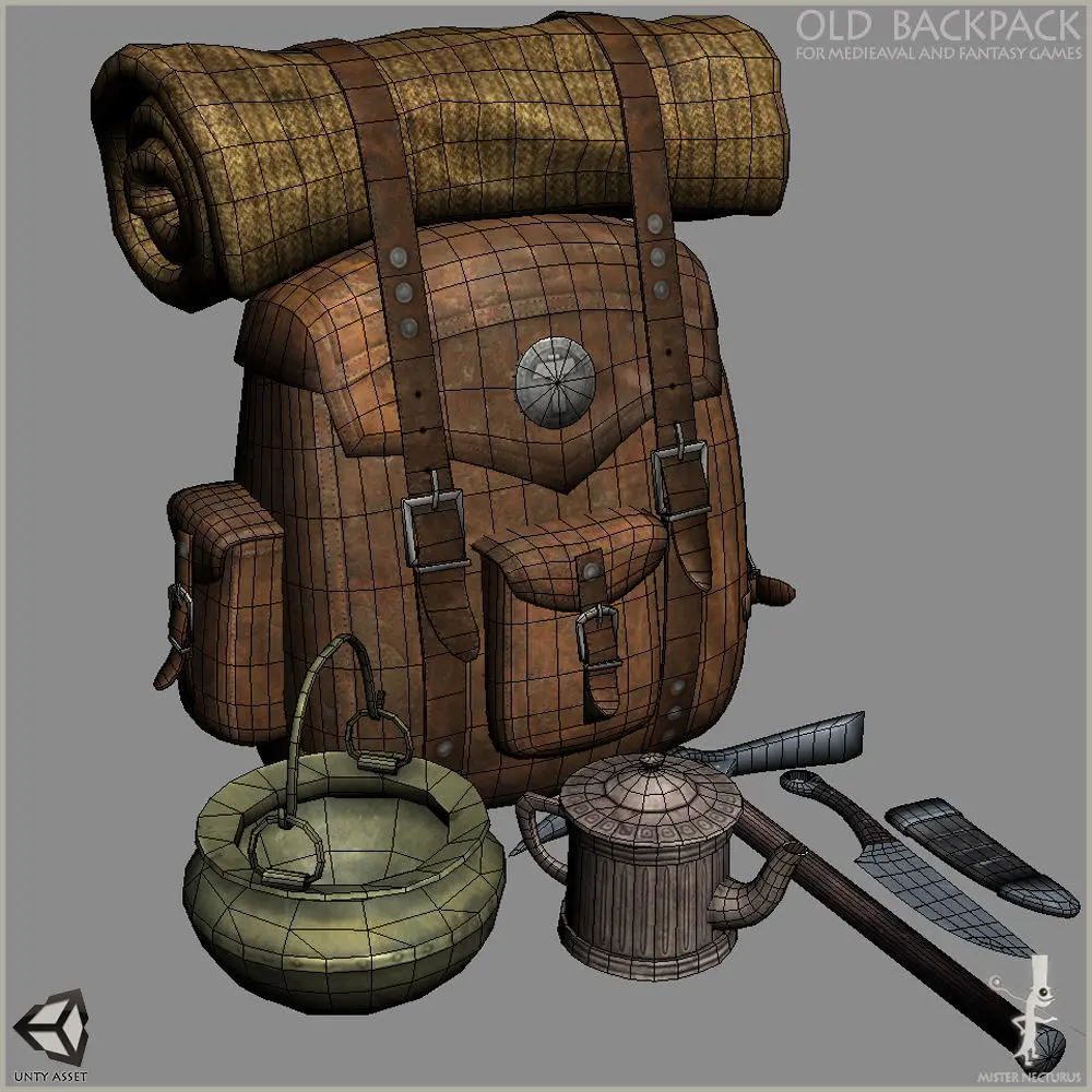 Backpack together with all props: 5,689 polygons, 11,206 triangles, 6,016 vertexes.