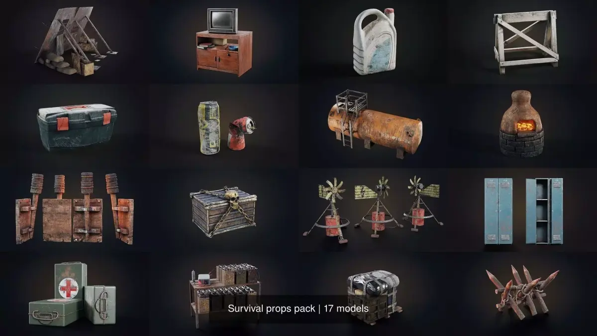 *A set of different post-apocalyptic props for your game. *