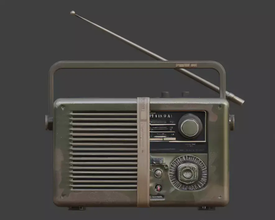 This high-quality 3D asset features a Stylized Survival Radio, a masterfully crafted communication prop designed for post-apocalyptic or military-themed environments.