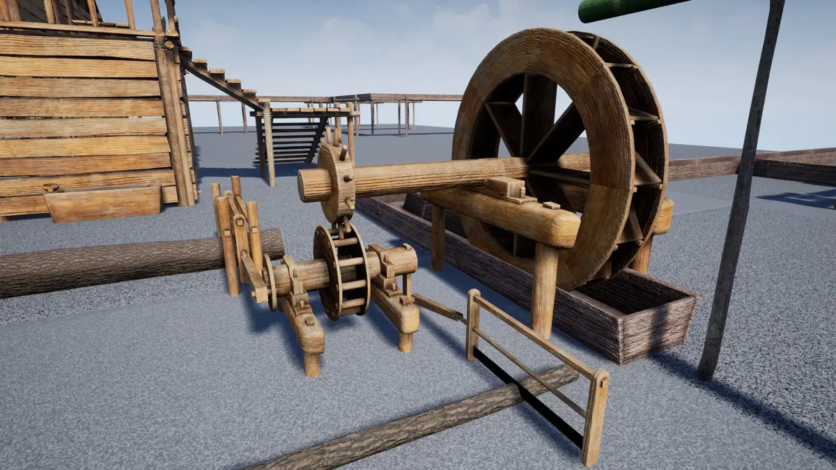 I focused this pack on wood production: from simple tools for cutting wood to the creation of an automatic sawmill through the use of water and a mill wheel.