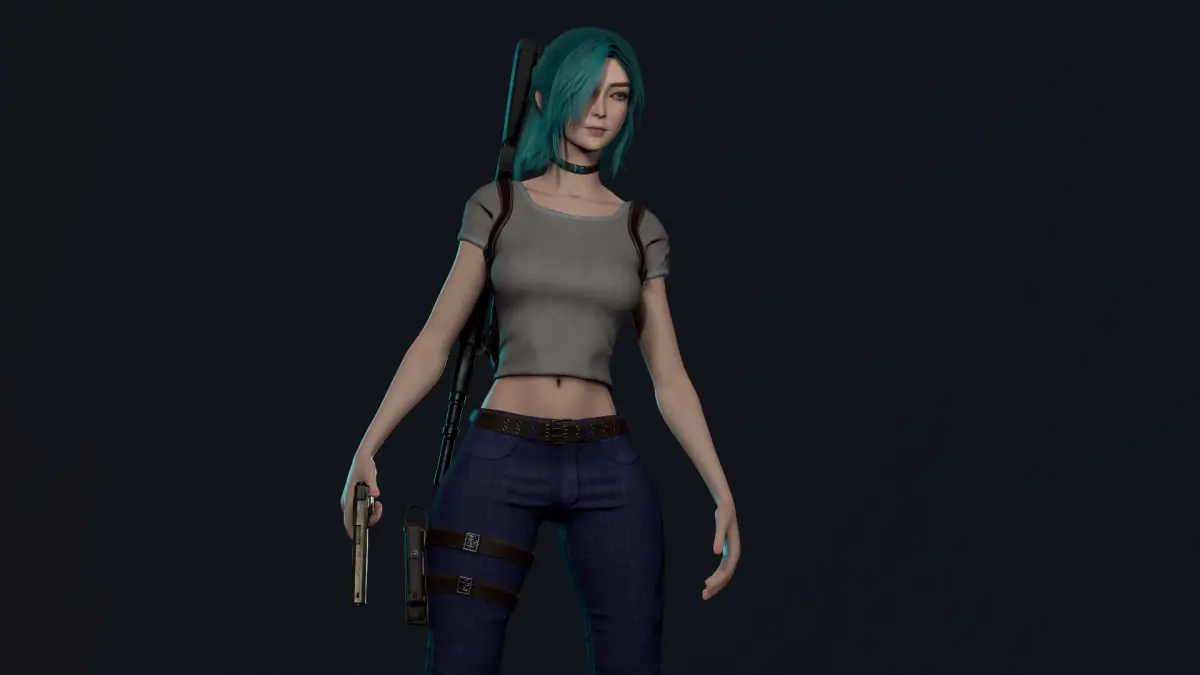 A 3D model of a cute Survivor Girl 4 with many options, including: 3 clothes dyes, modular clothes, Epic Skeleton, simulated wind hair and more! She can survive in harsh forests or in an apocalyptic city.