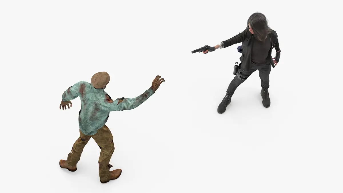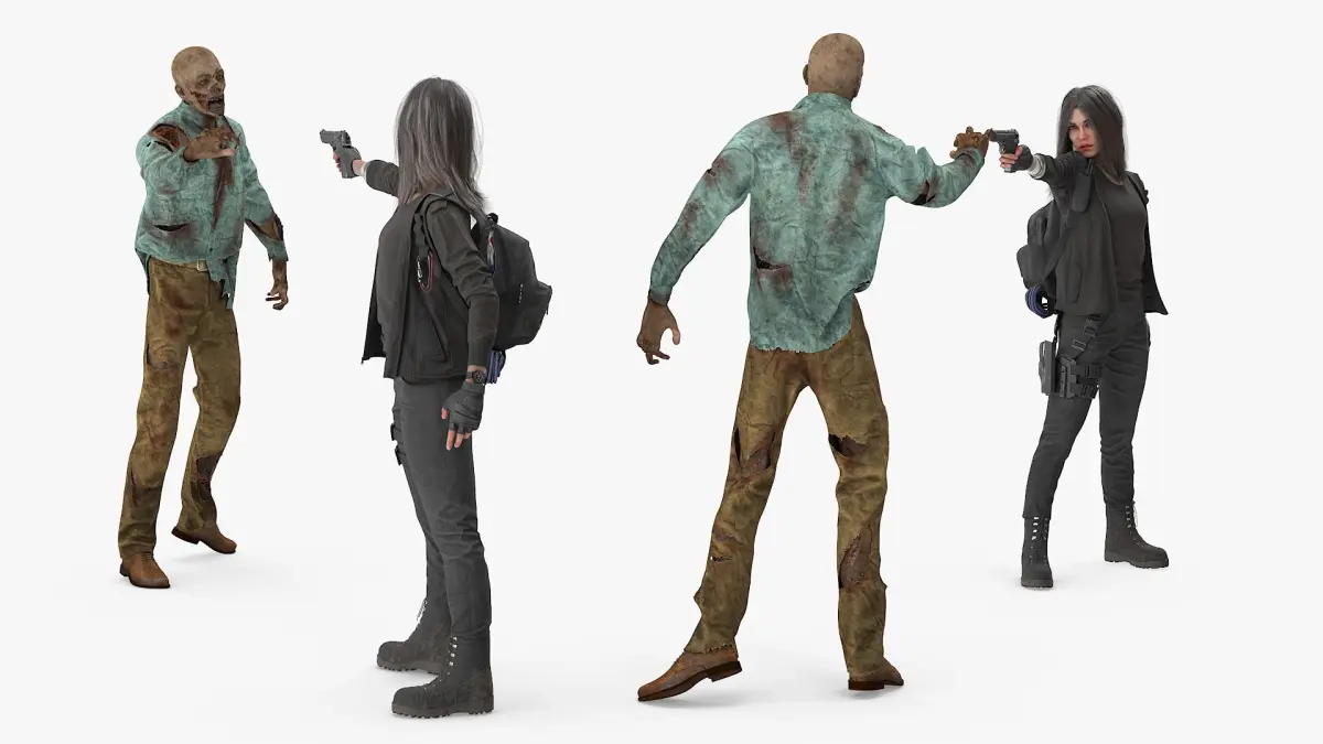 Survivor Girl Against Zombie is a high quality, photo real 3d model that will enhance detail and realism to any of your rendering projects. The model has a fully textured, detailed design that allows for close-up renders, and was originally modeled in 3ds Max 2020 and rendered with V-Ray. Renders have no postprocessing!