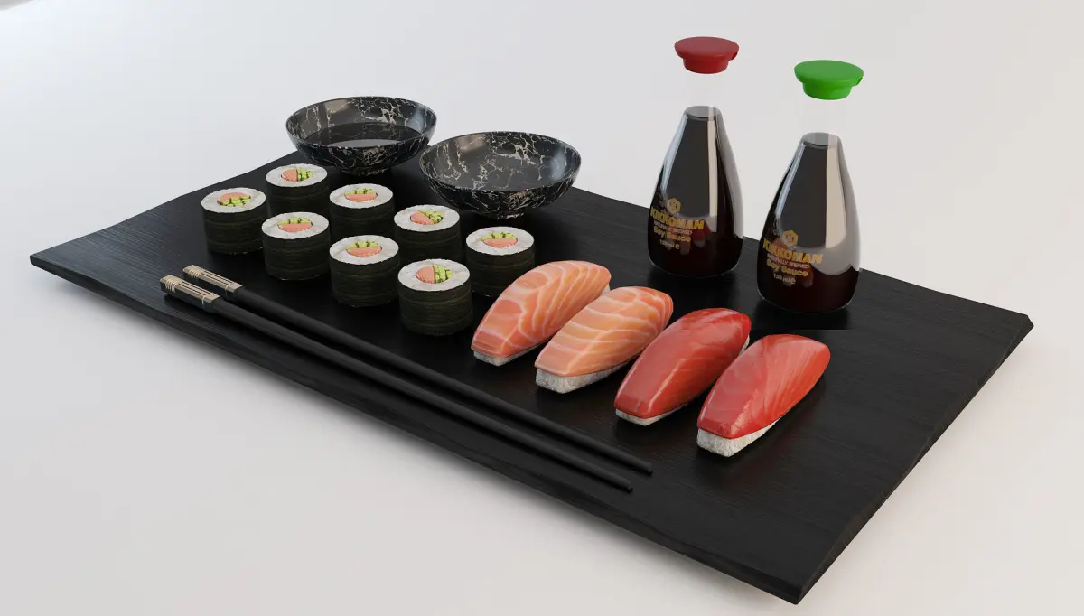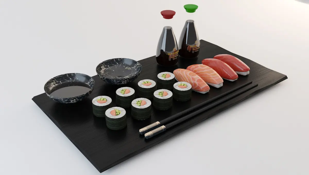 Traditional Japanese Sushi and Nigiri Plate Set.