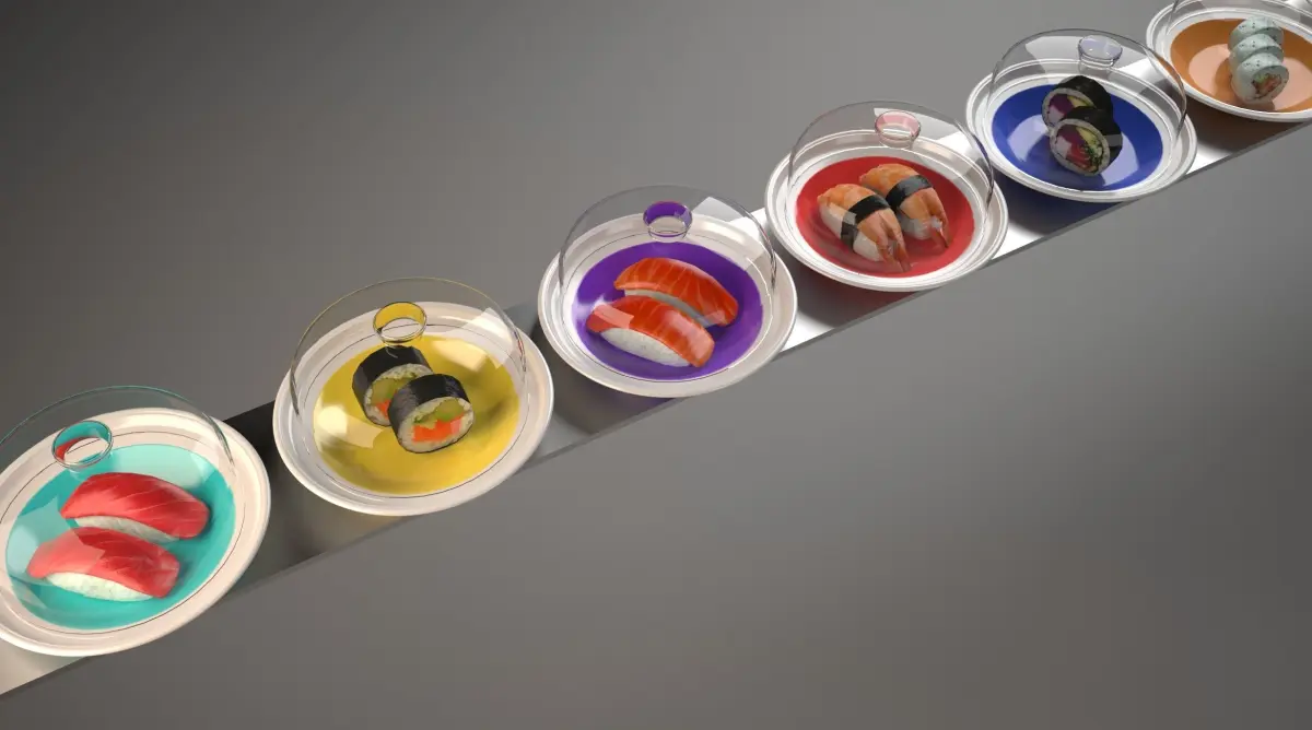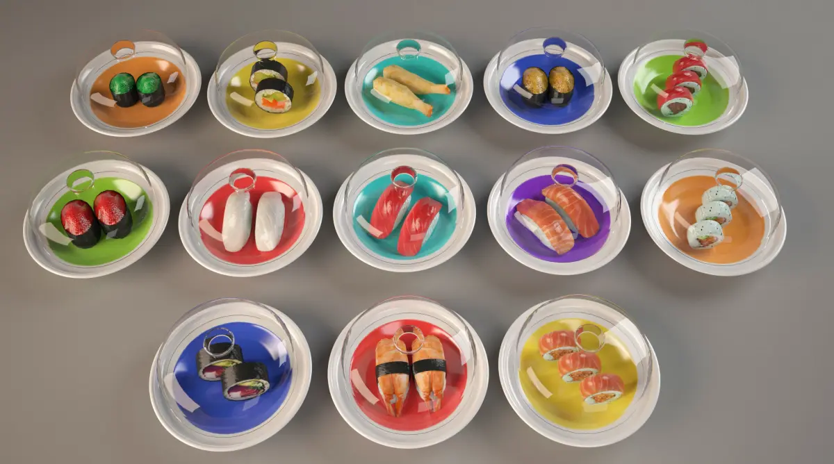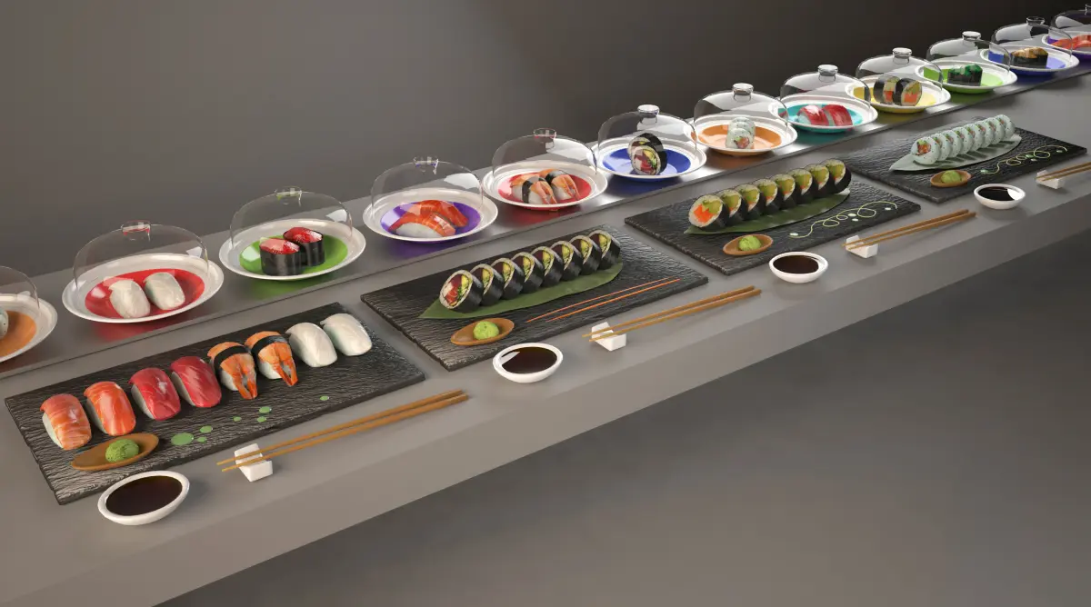 sushi belt Kaitenzushi and dishes Giapan seafood Low-poly 3D model